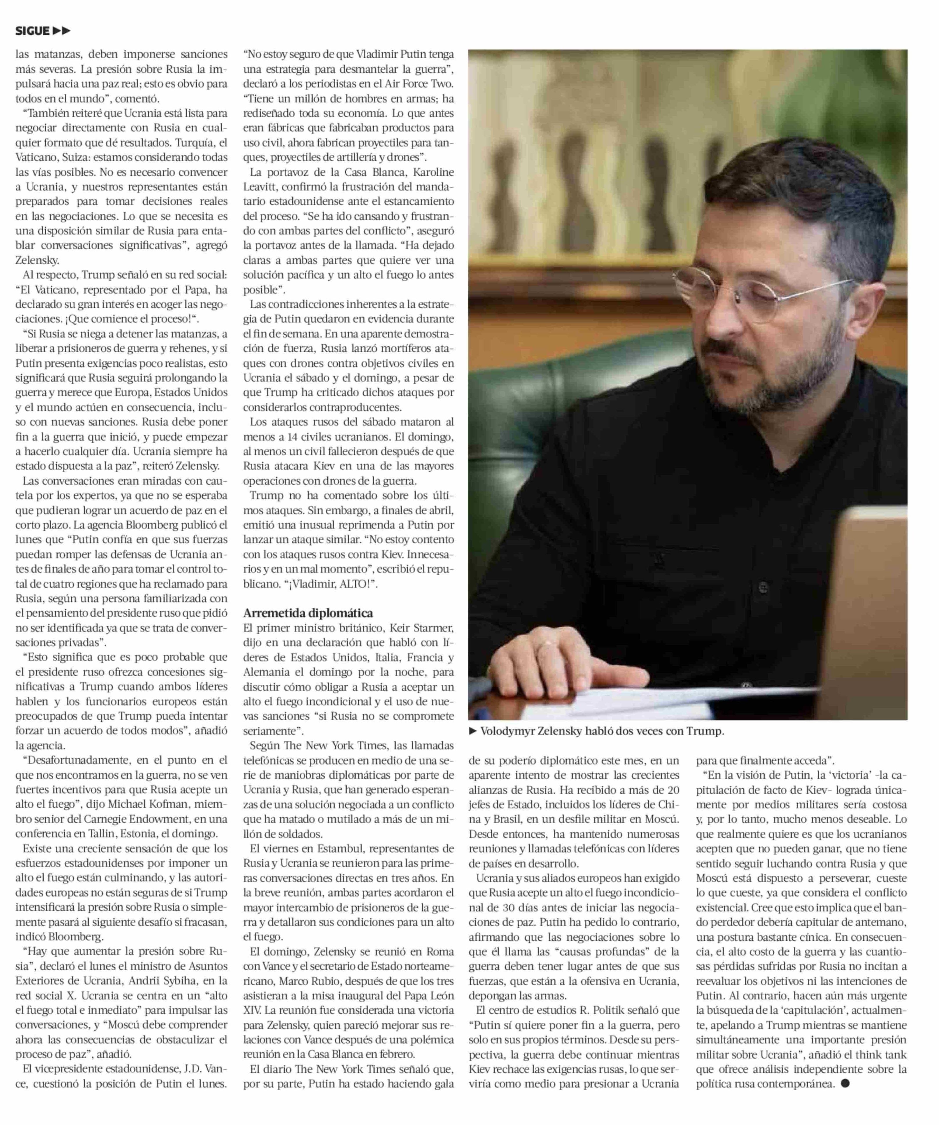 Trump habla con Putin y Zelensky y se muestra optimista de alto el fuego, pero Rusia niega que exista cronograma de negociaciones