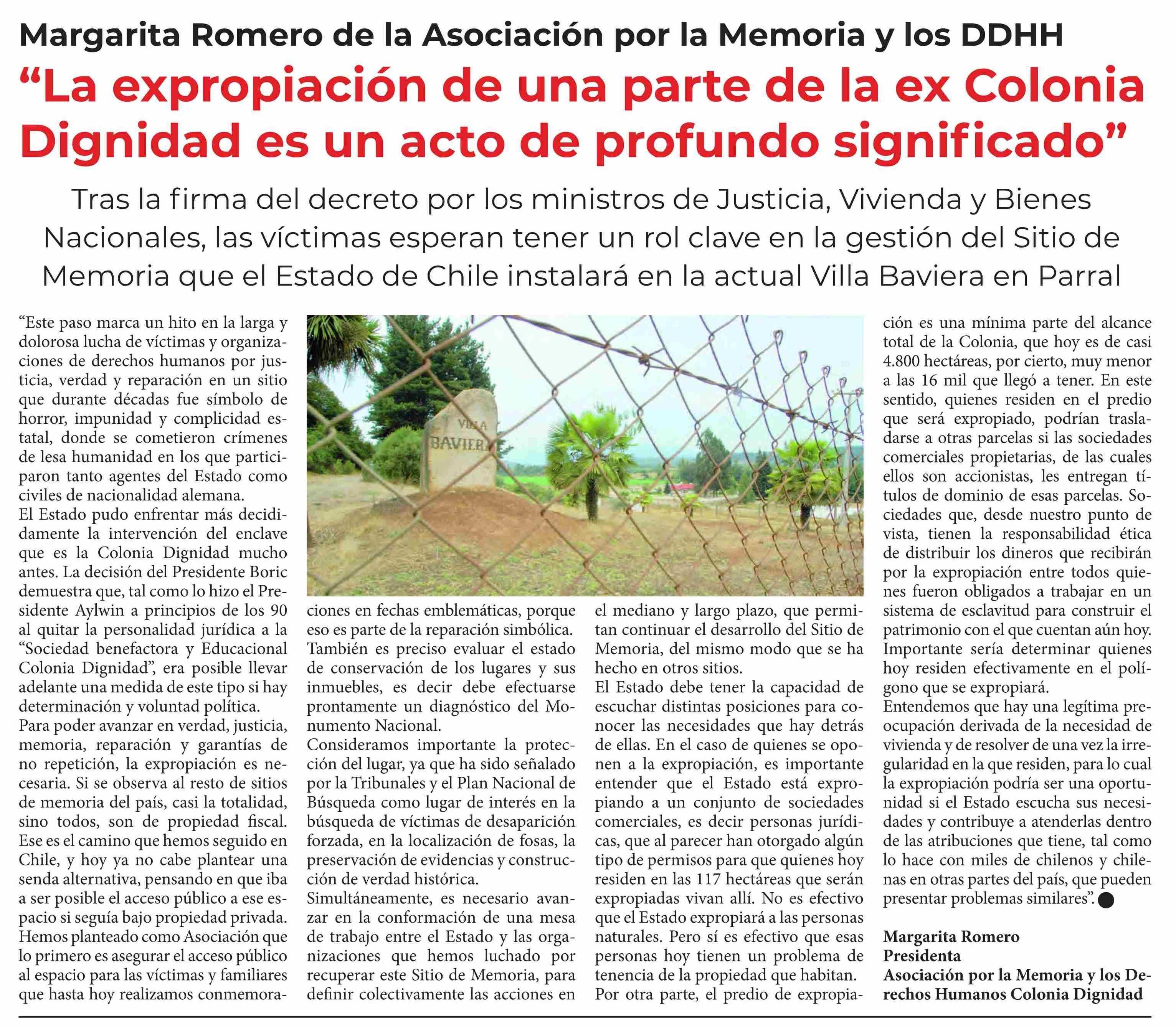 "La expropiación de una parte de la ex Colonia Dignidad es un acto de profundo significado"