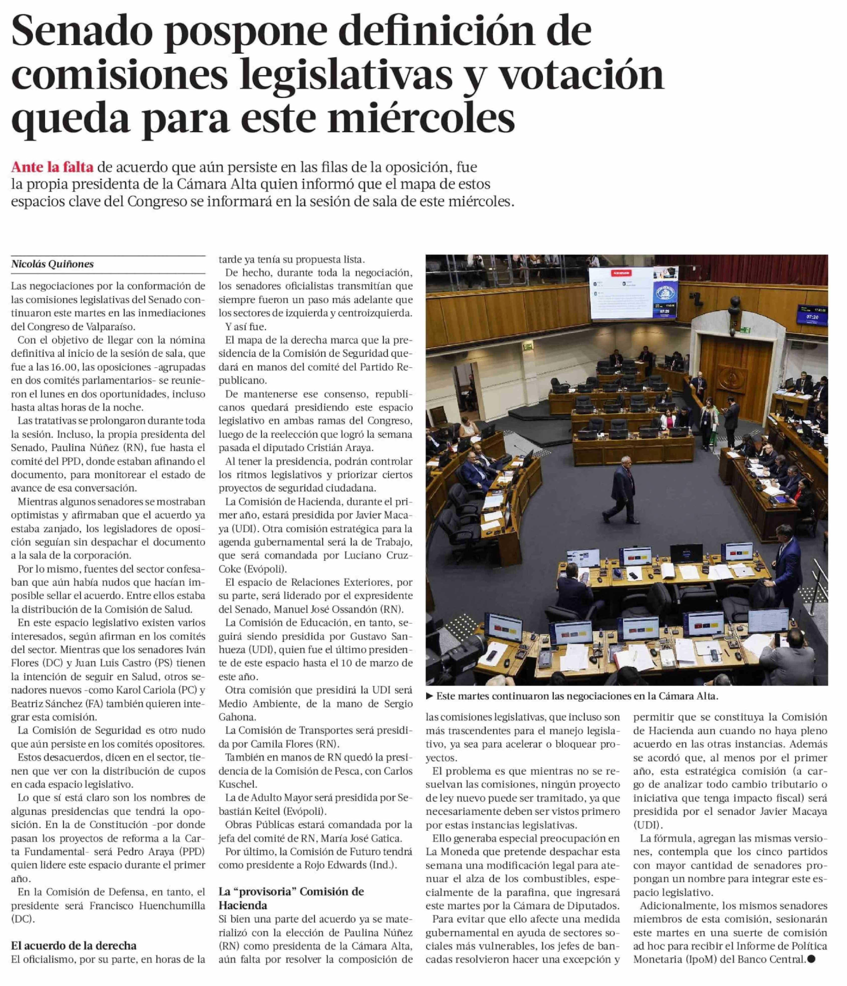 Senado pospone definición de comisiones legislativas y votación queda para este miércoles