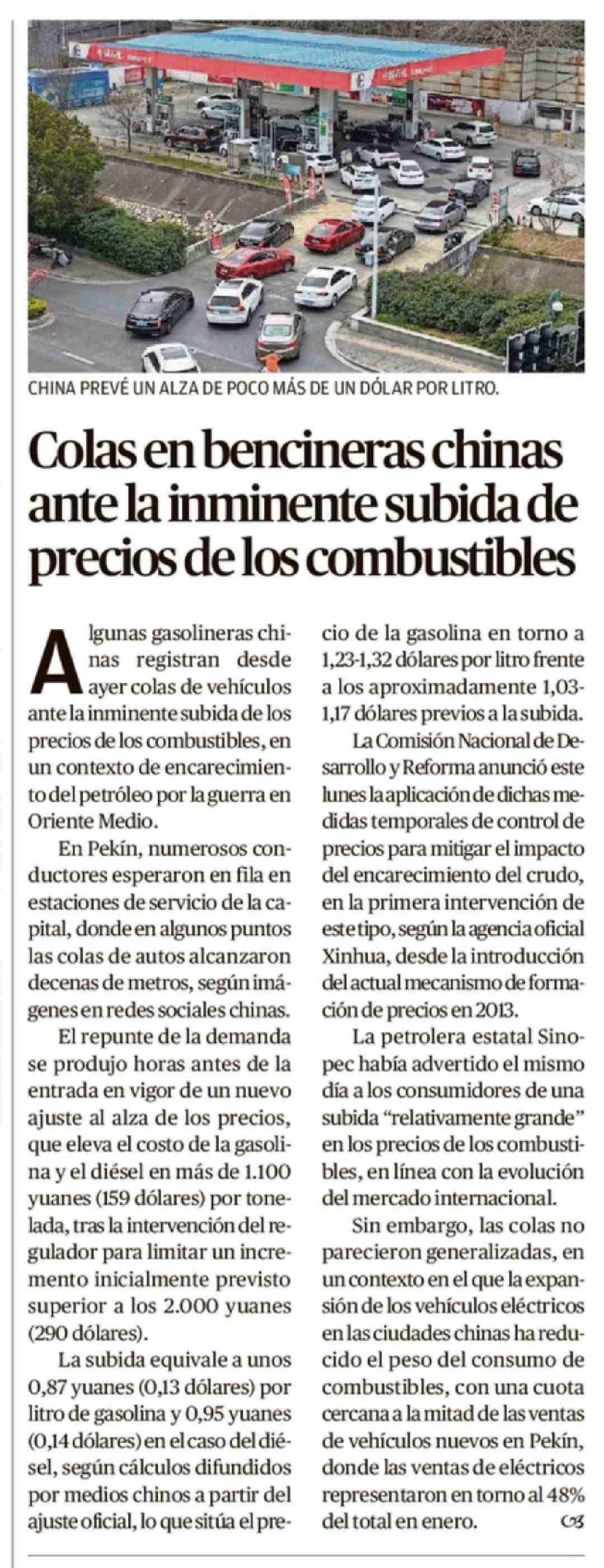 Colas en bencineras chinas ante la inminente subida de precios de los combustibles
