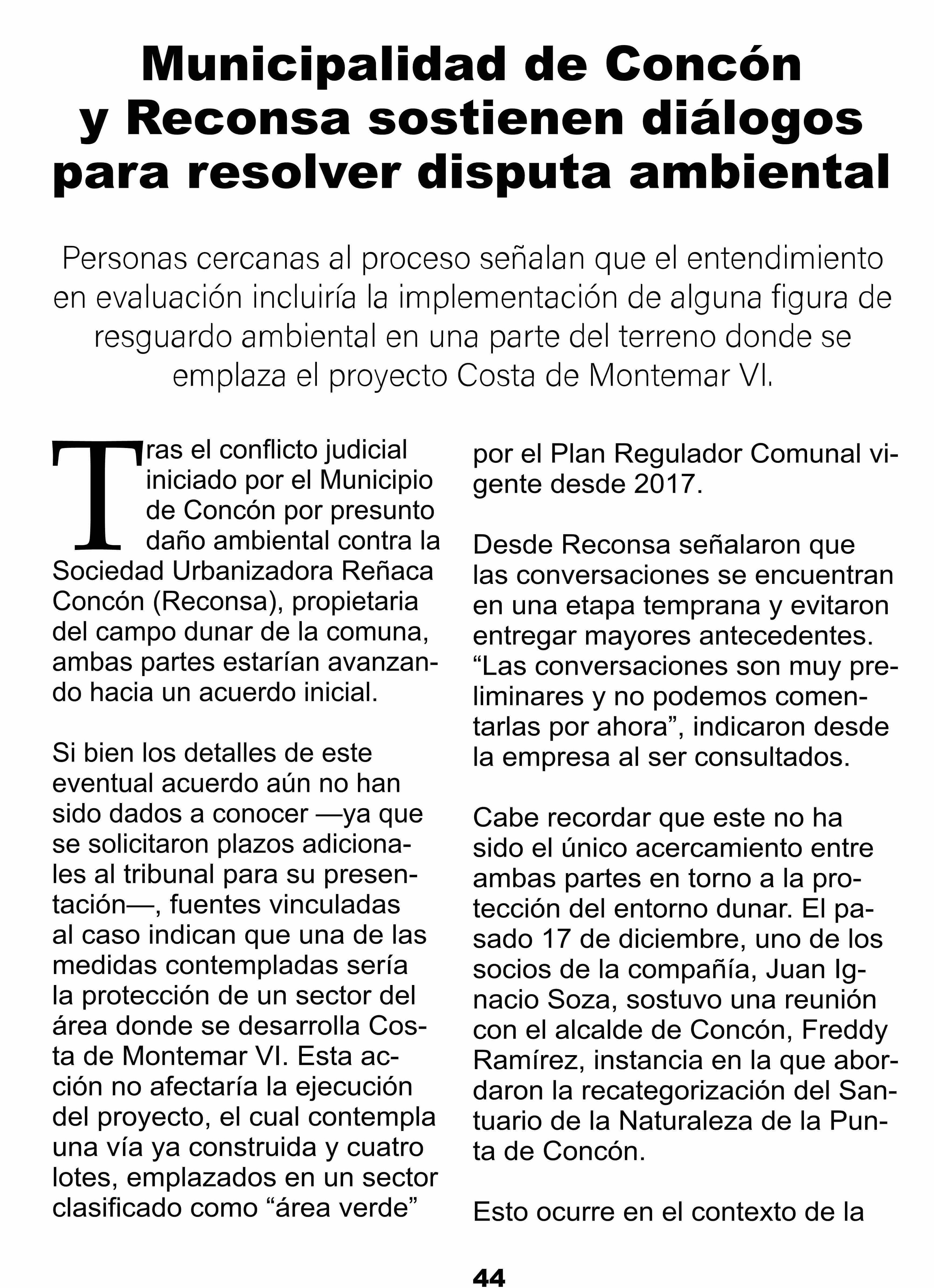 Título: Municipalidad de Concón y Reconsa sostienen diálogos para resolver disputa ambiental
