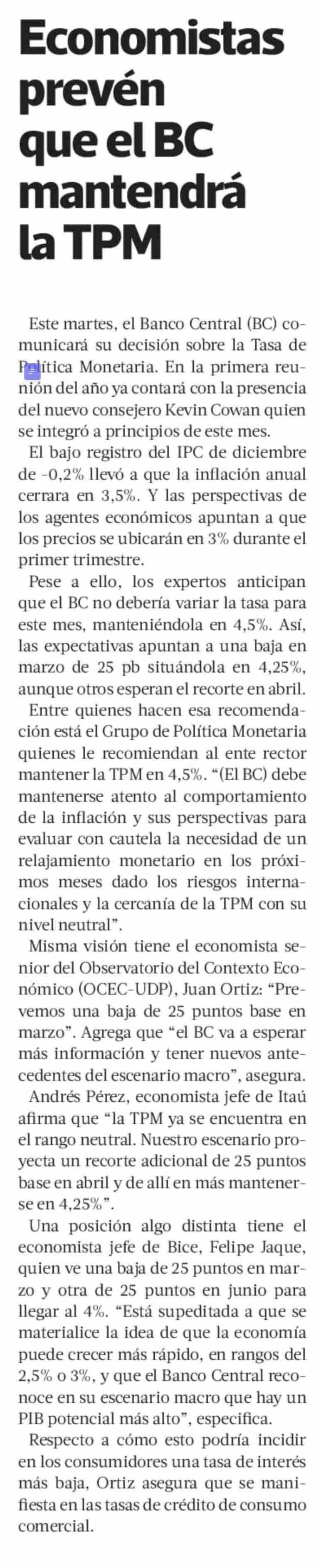 Economistas prevén que el BC mantendrá la TPM
