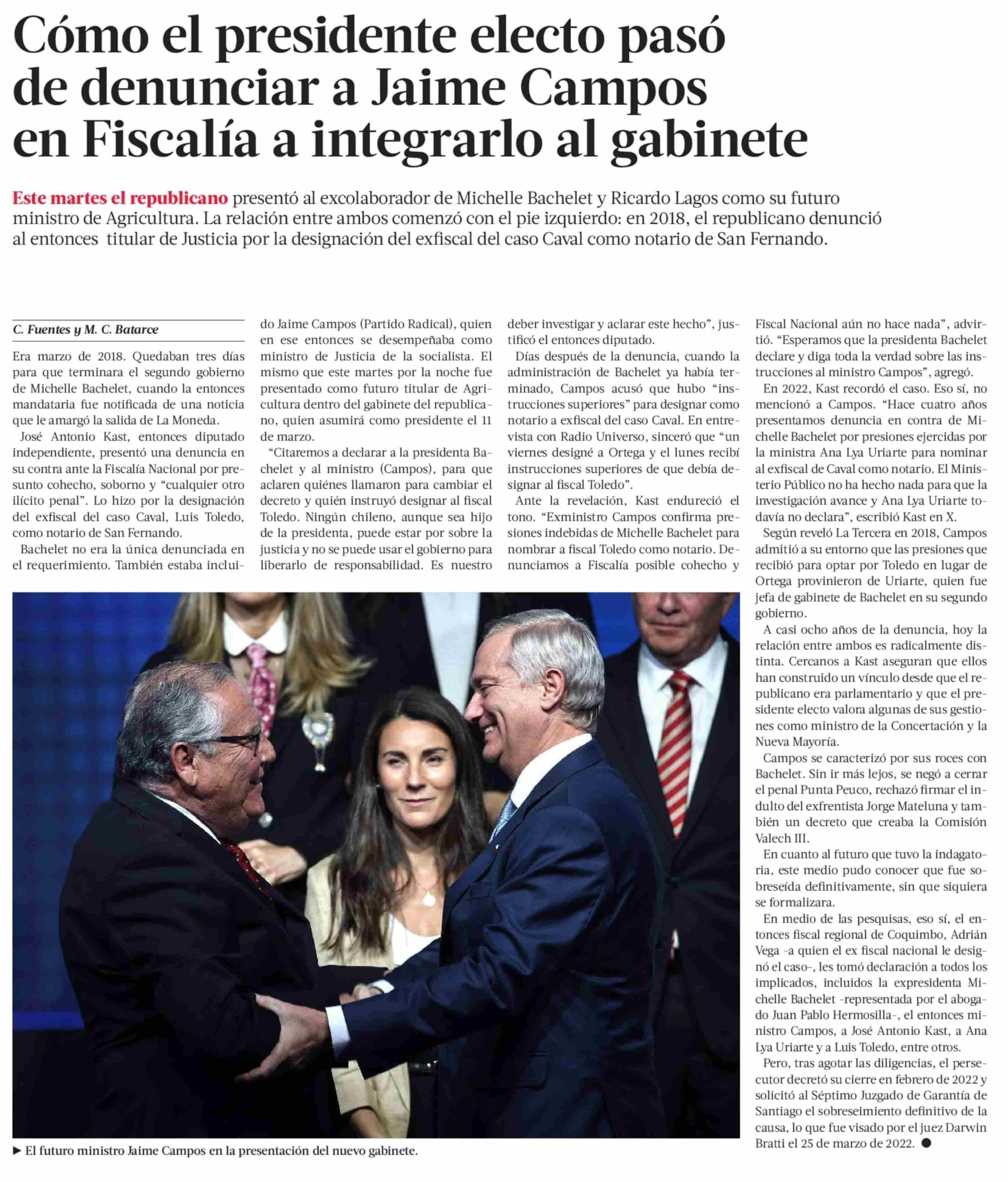 Cómo el presidente electo pasó de denunciar a Jaime Campos en Fiscalía a integrarlo al gabinete