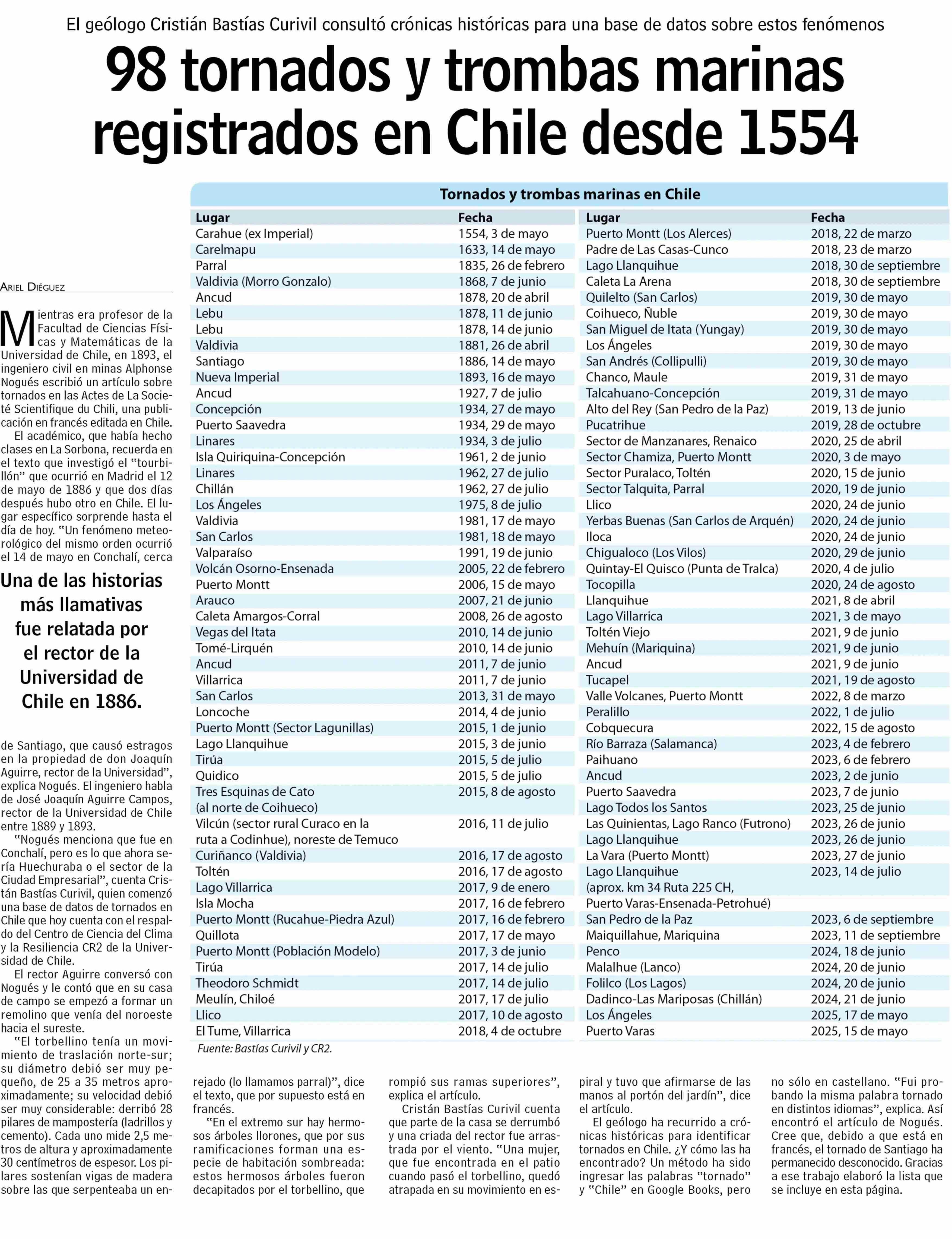 98 tornados y trombas marinas registrados en Chile desde 1554