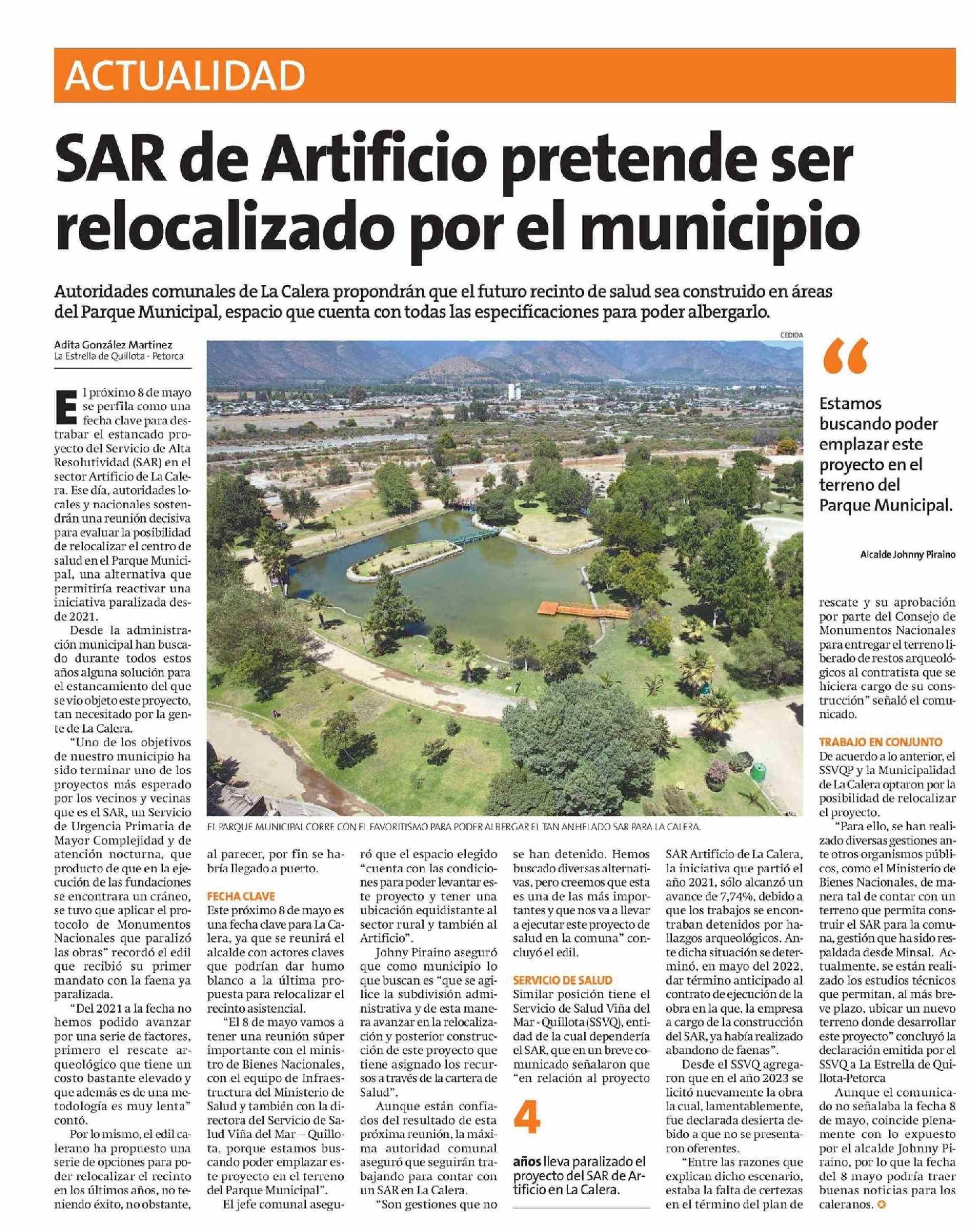 SAR de Artificio pretende ser relocalizado por el municipio