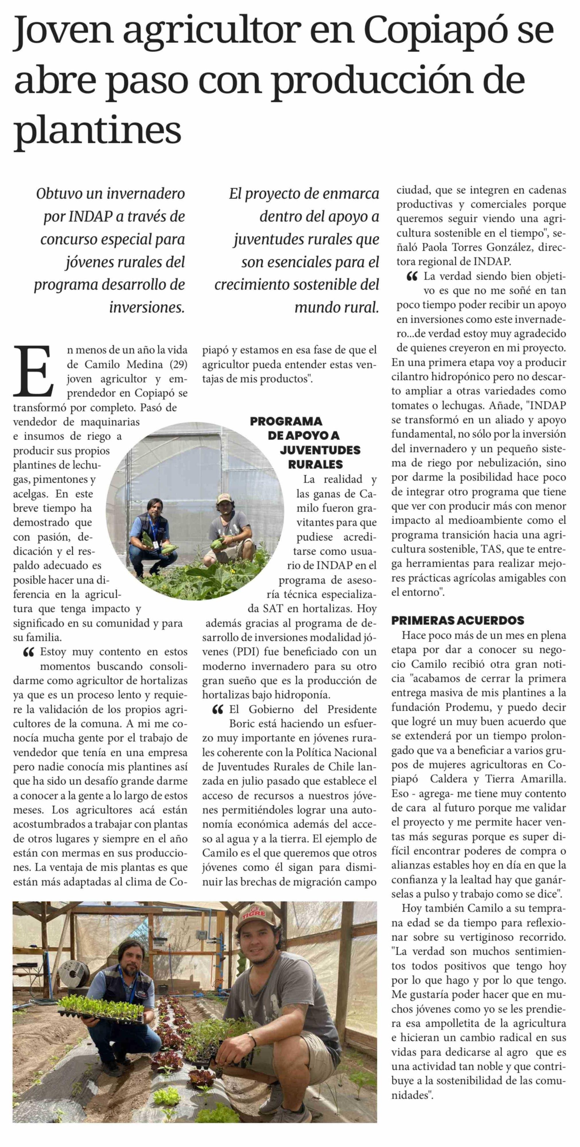 Título: Joven agricultor en Copiapó se abre paso con producción de plantines