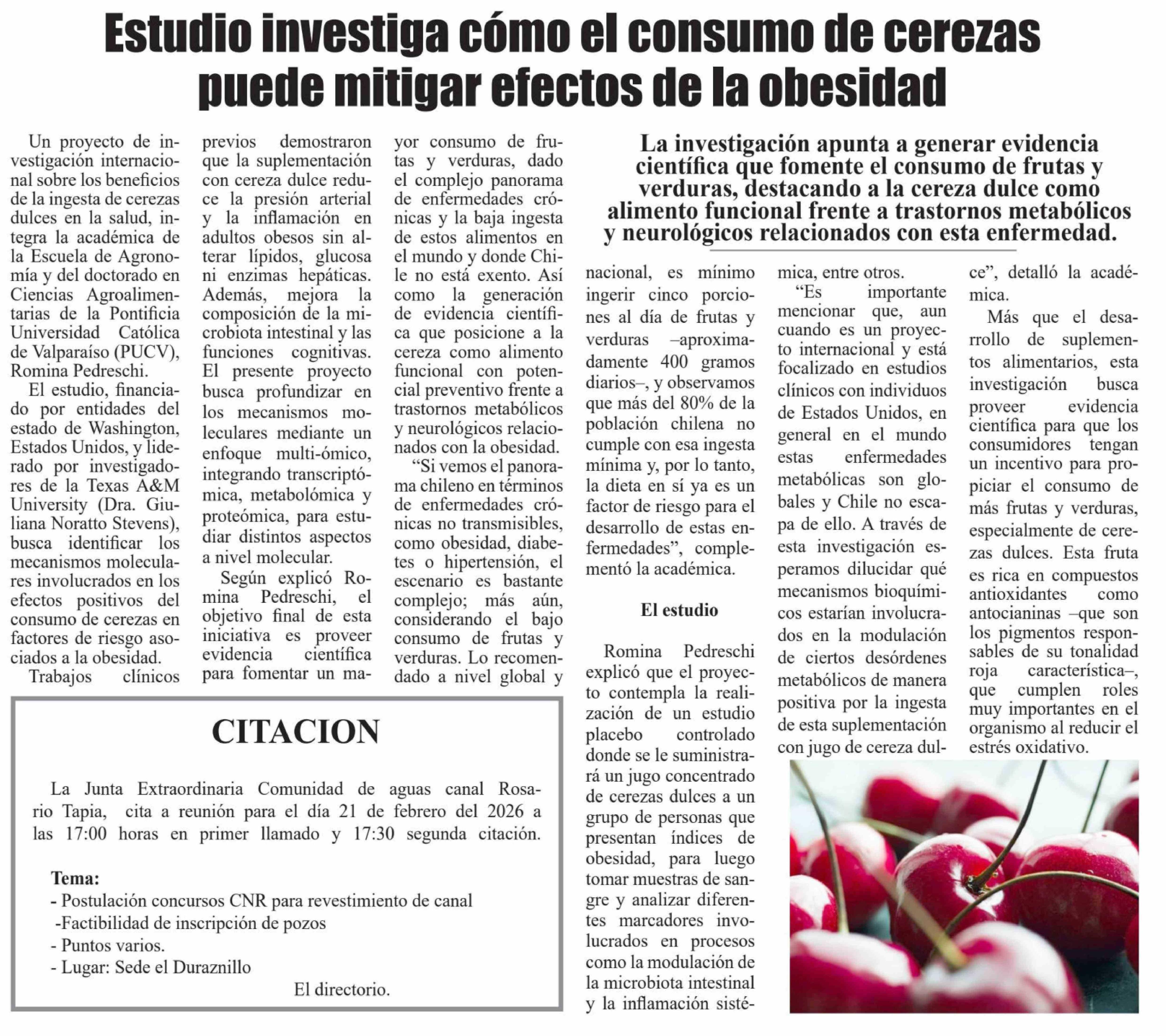 Título: Estudio investiga cómo el consumo de cerezas puede mitigar efectos de la obesidad
