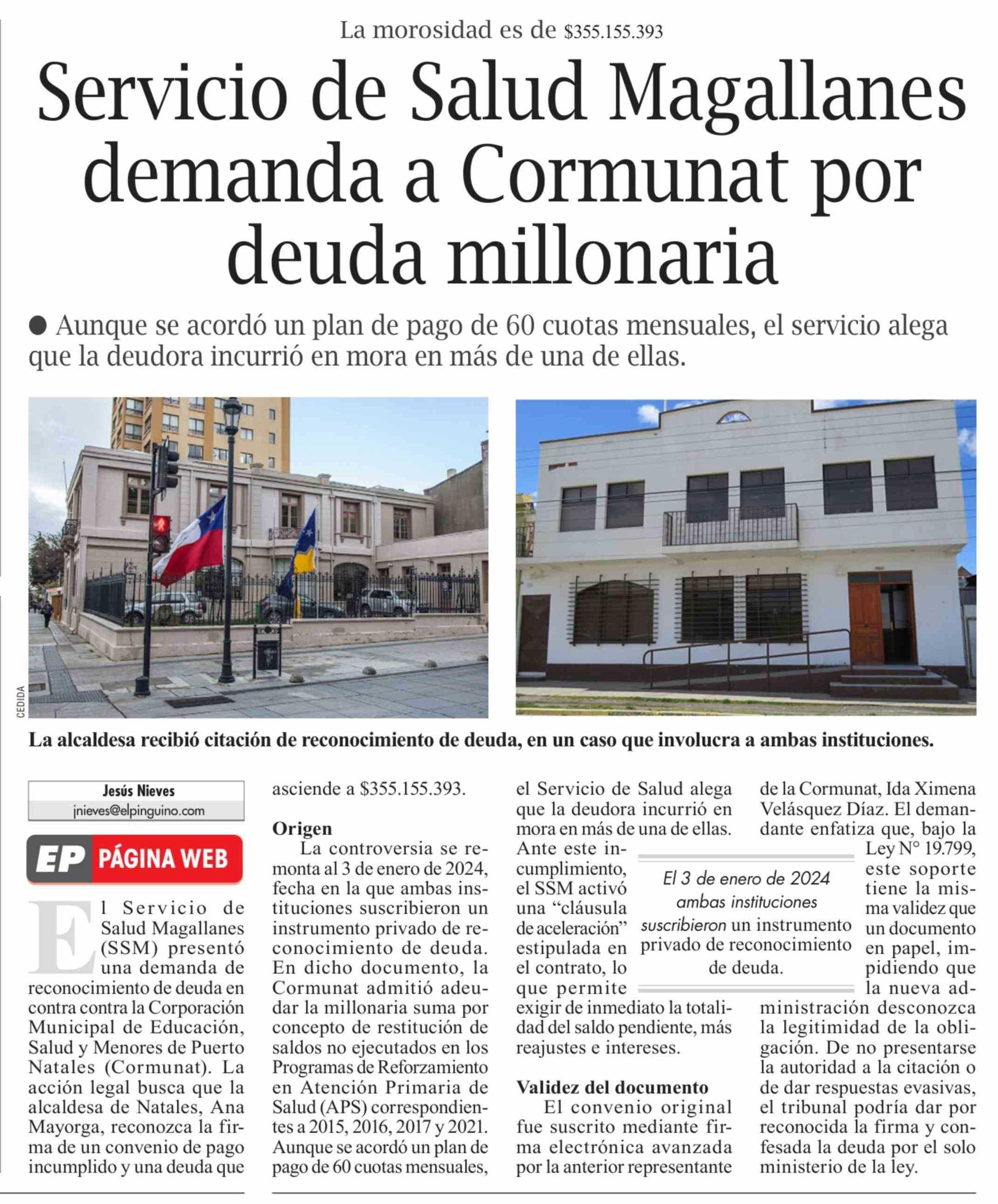 Título: Servicio de Salud Magallanes demanda a Cormunat por deuda millonaria