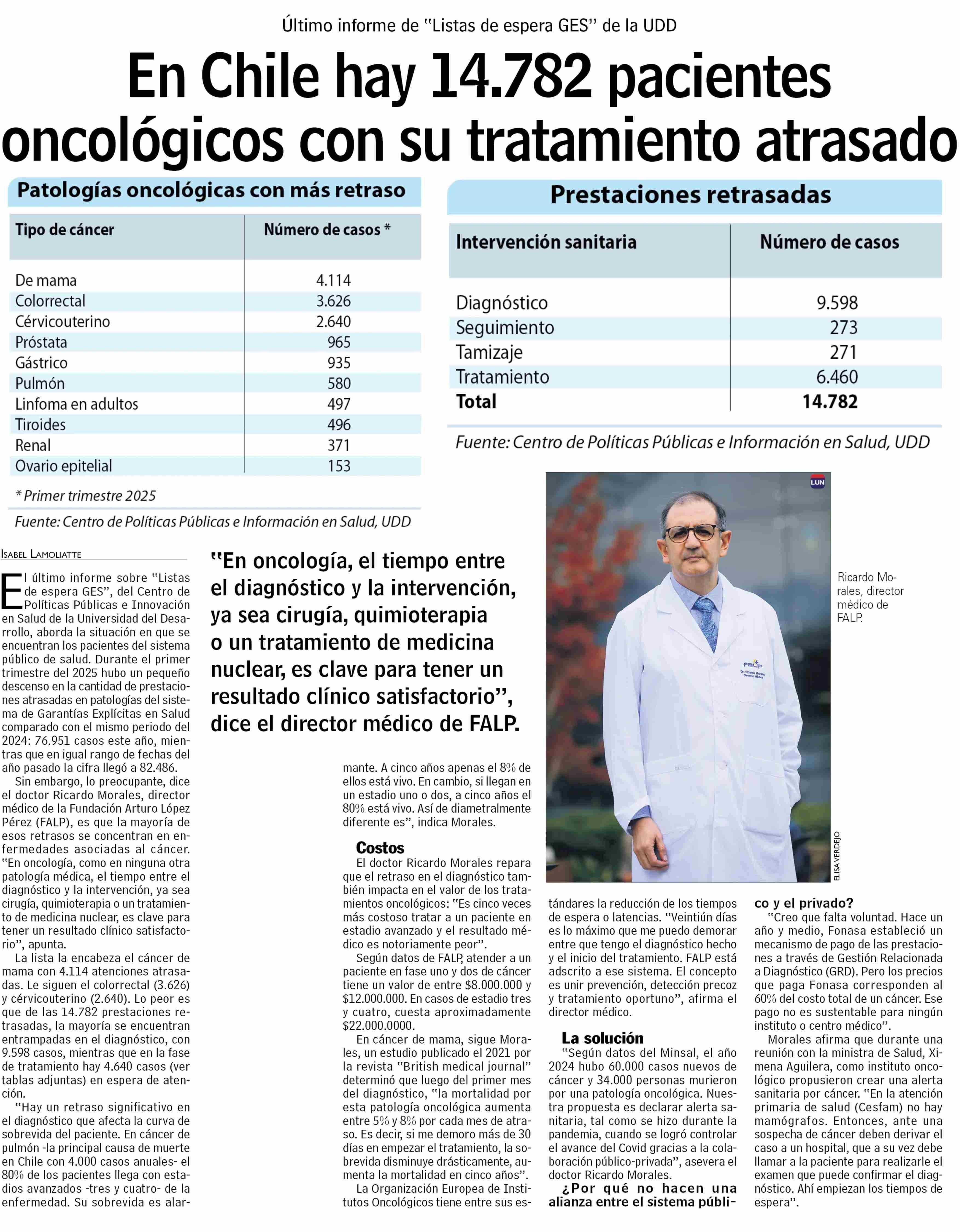 En Chile hay 14.782 pacientes oncológicos con su tratamiento atrasado