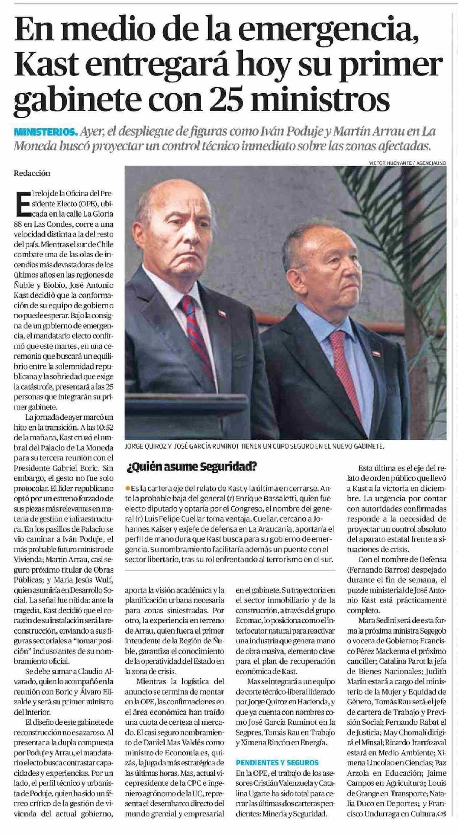 En medio de la emergencia, Kast entregará hoy su primer gabinete con 25 ministros