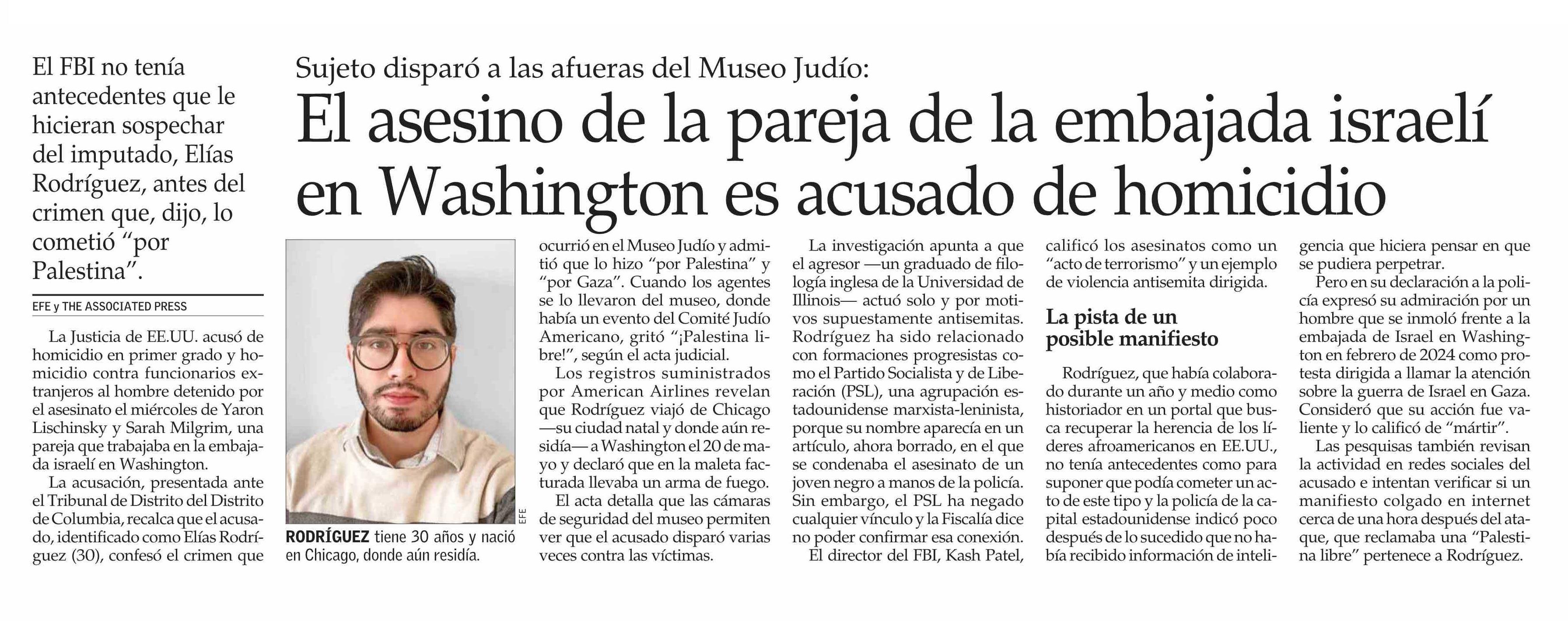 El asesino de la pareja de la embajada israelí en Washington es acusado de homicidio
