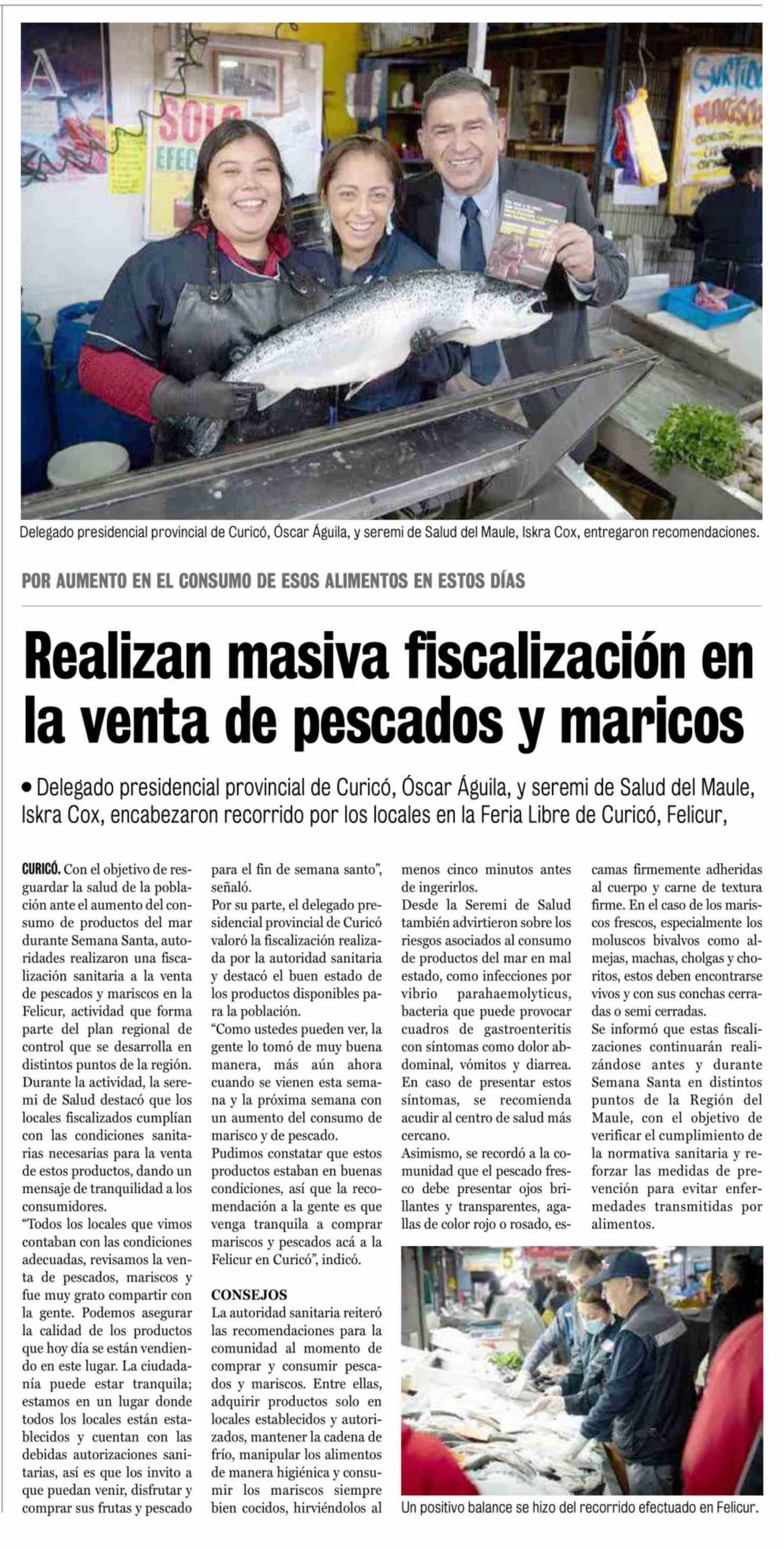 Realizan masiva fiscalización en la venta de pescados y maricos