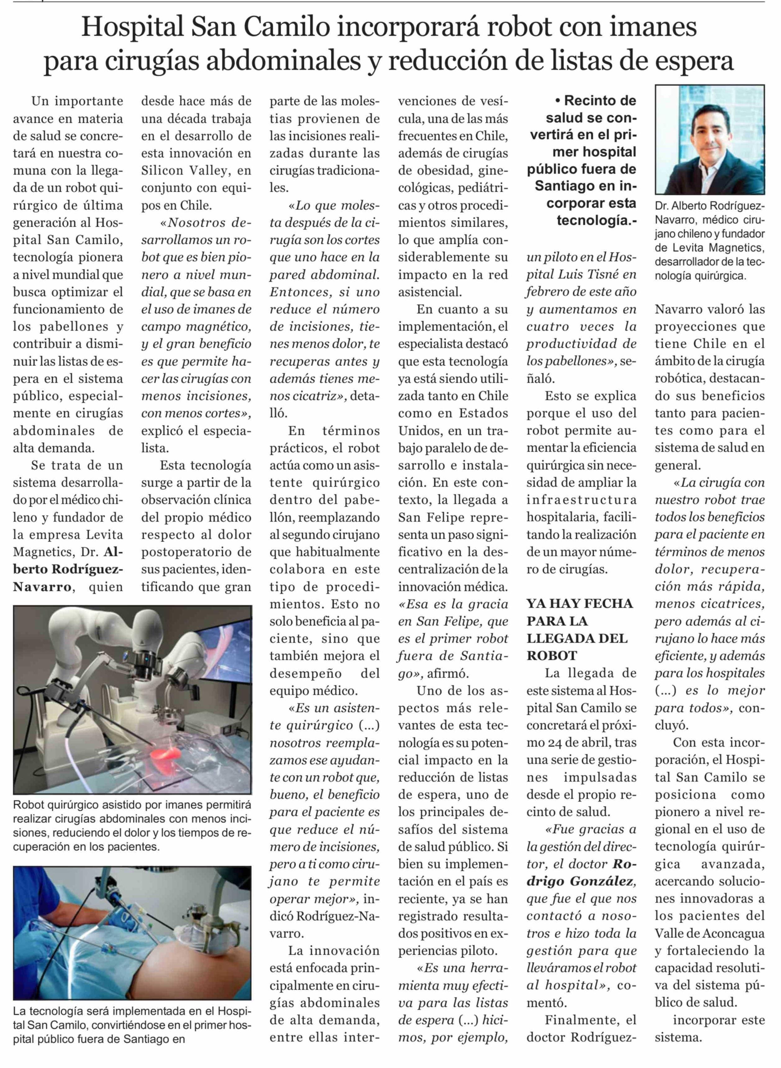 Título: Hospital San Camilo incorporará robot con imanes para cirugías abdominales y reducción de listas de espera