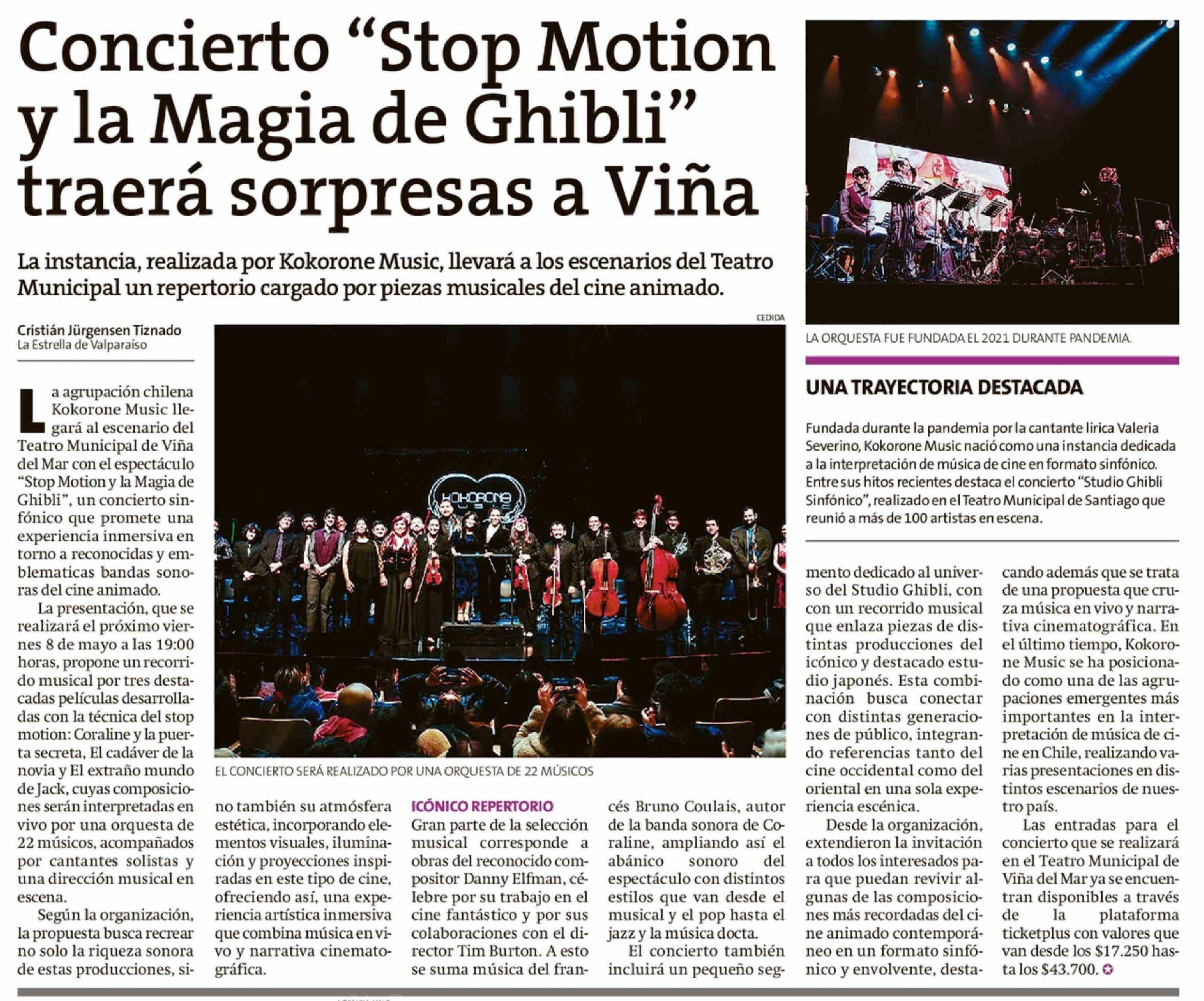 Concierto "Stop Motion y la Magia de Ghibli" traerá sorpresas a Viña