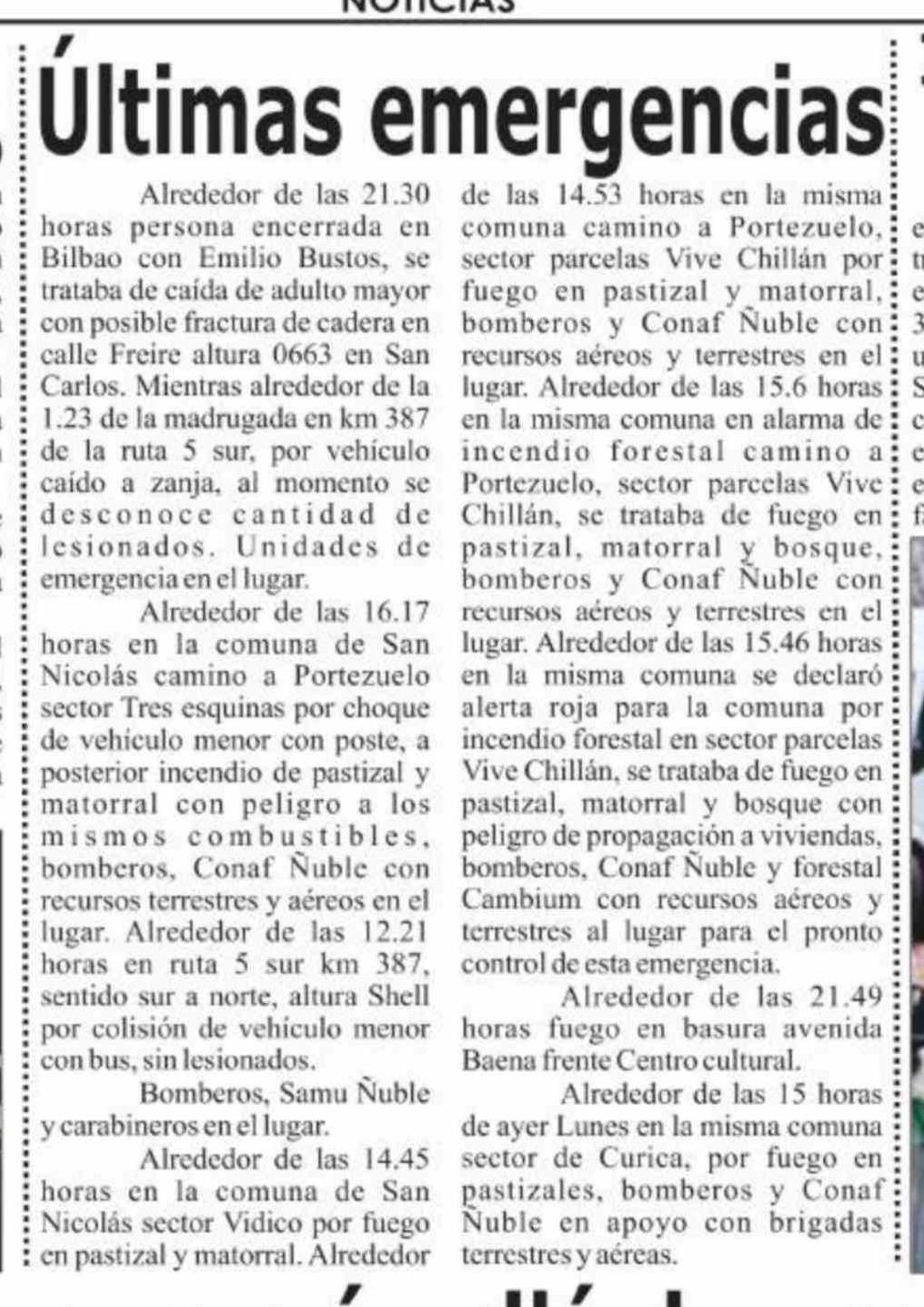 Últimas emergencias