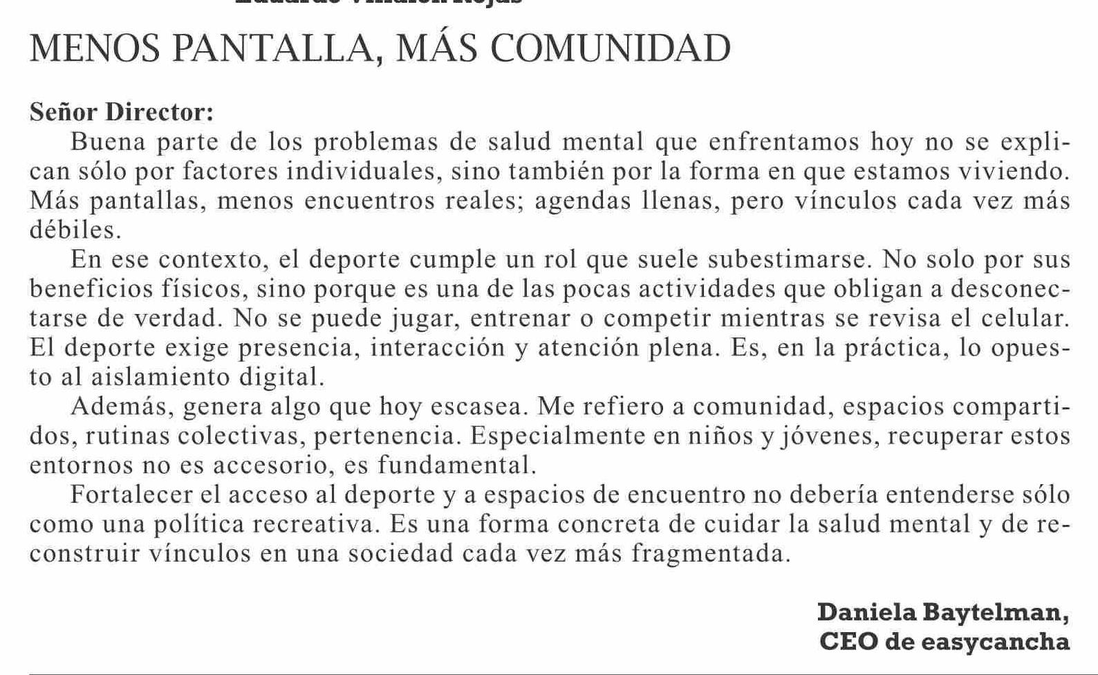Cartas: MENOS PANTALLA, MÁS COMUNIDAD