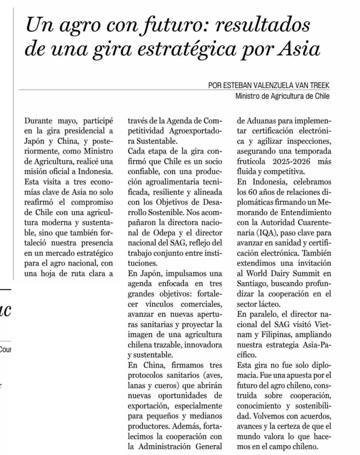 CARTAS: Un agro con futuro: resultados de una gira estratégica por Asia