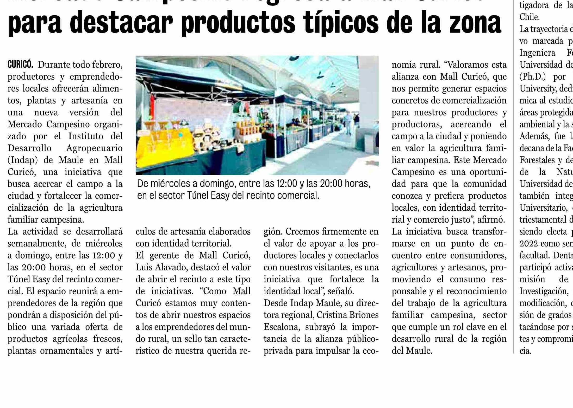 Mercado Campesino regresa a Mall Curicó para destacar productos típicos de la zona