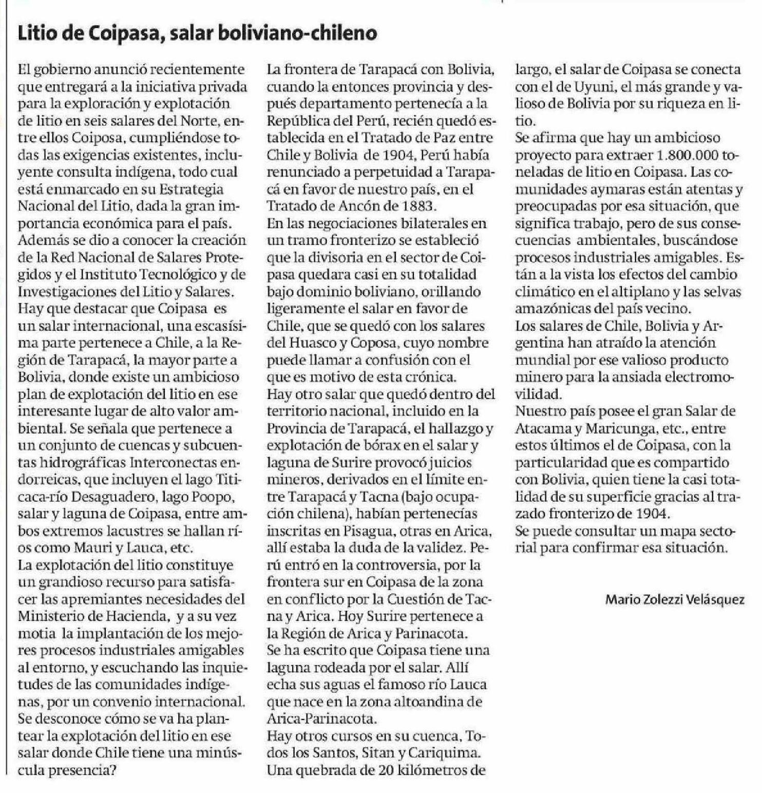 Litio de Coipasa, salar boliviano-chileno