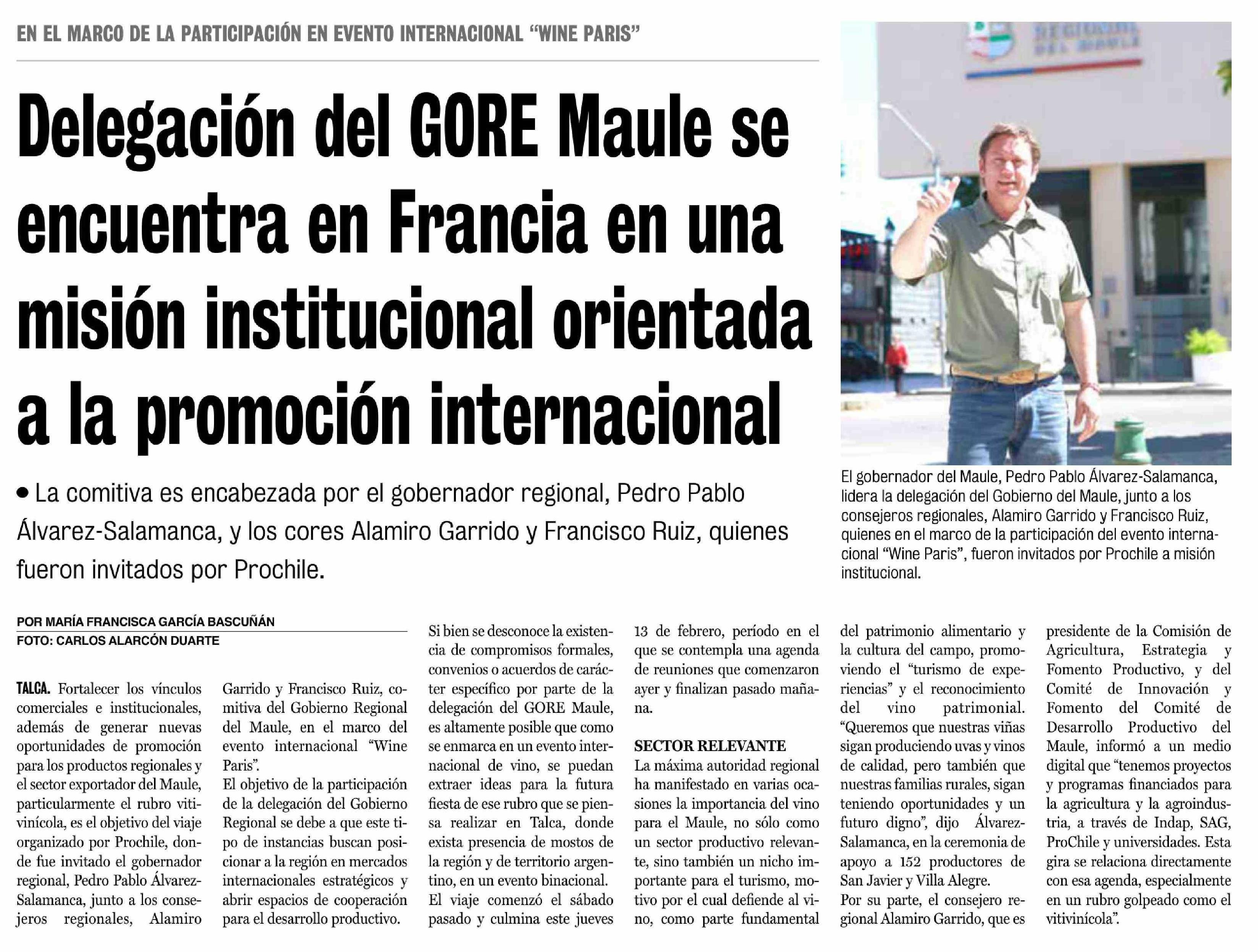 Delegación del GORE Maule se encuentra en Francia en una misión institucional orientada a la promoción internacional