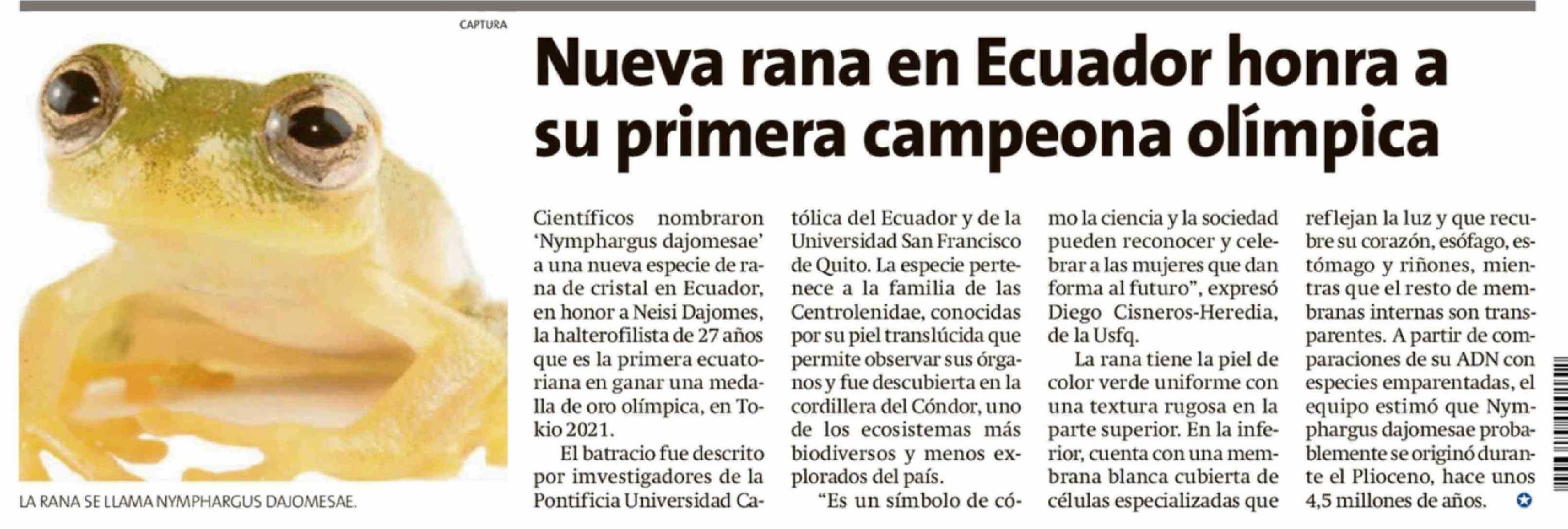 Nueva rana en Ecuador honra a su primera campeona olímpica