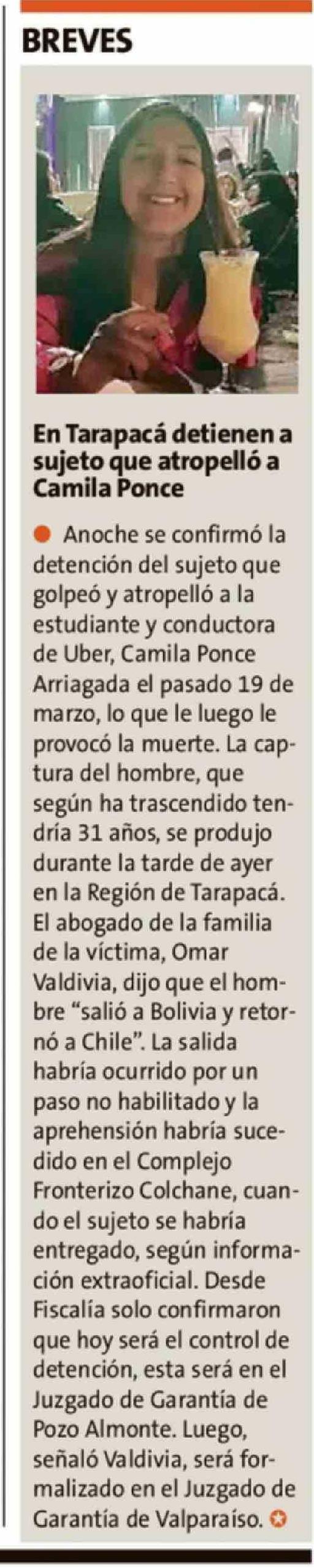 En Tarapacá detienen a sujeto que atropello a Camila Ponce