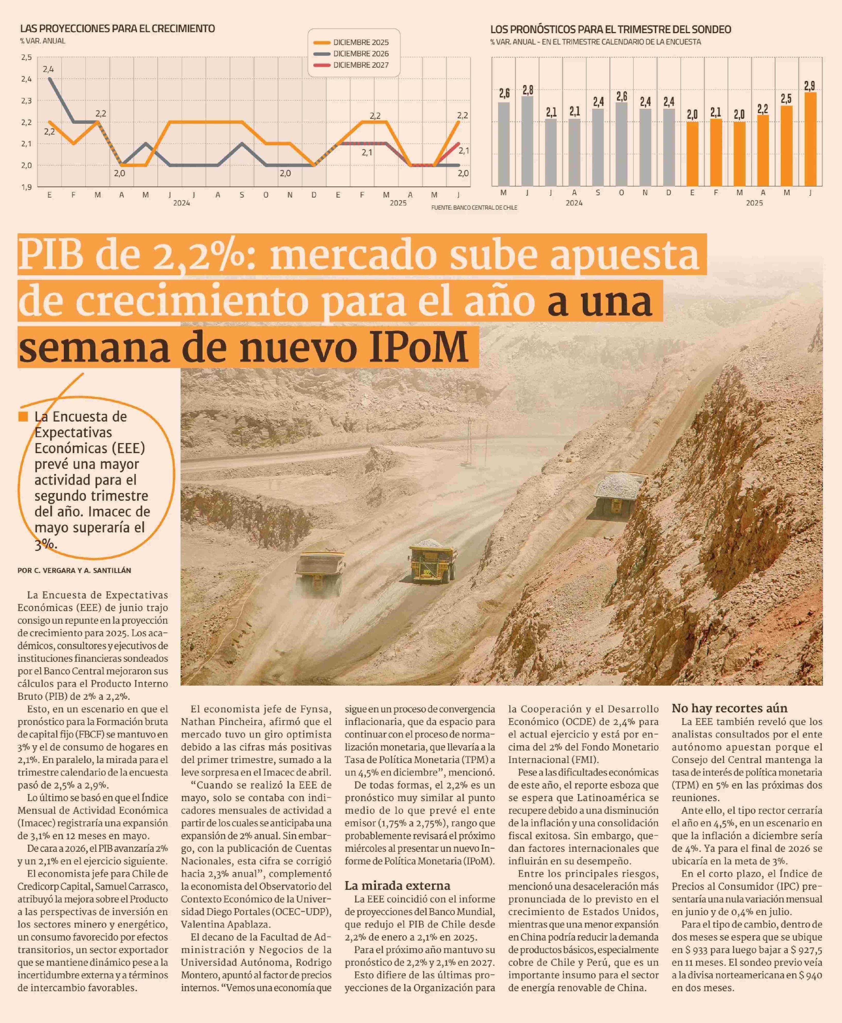 PIB de 2,2%: mercado sube apuesta de crecimiento para el año a una semana de nuevo IPoM
