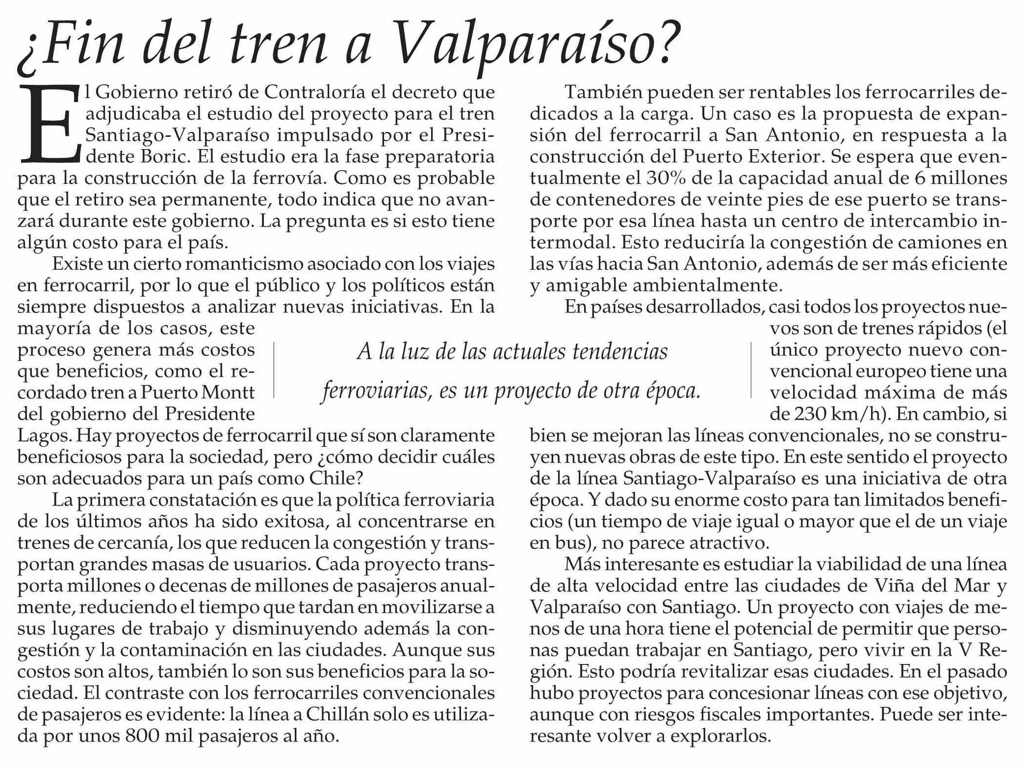 ¿Fin del tren a Valparaíso?