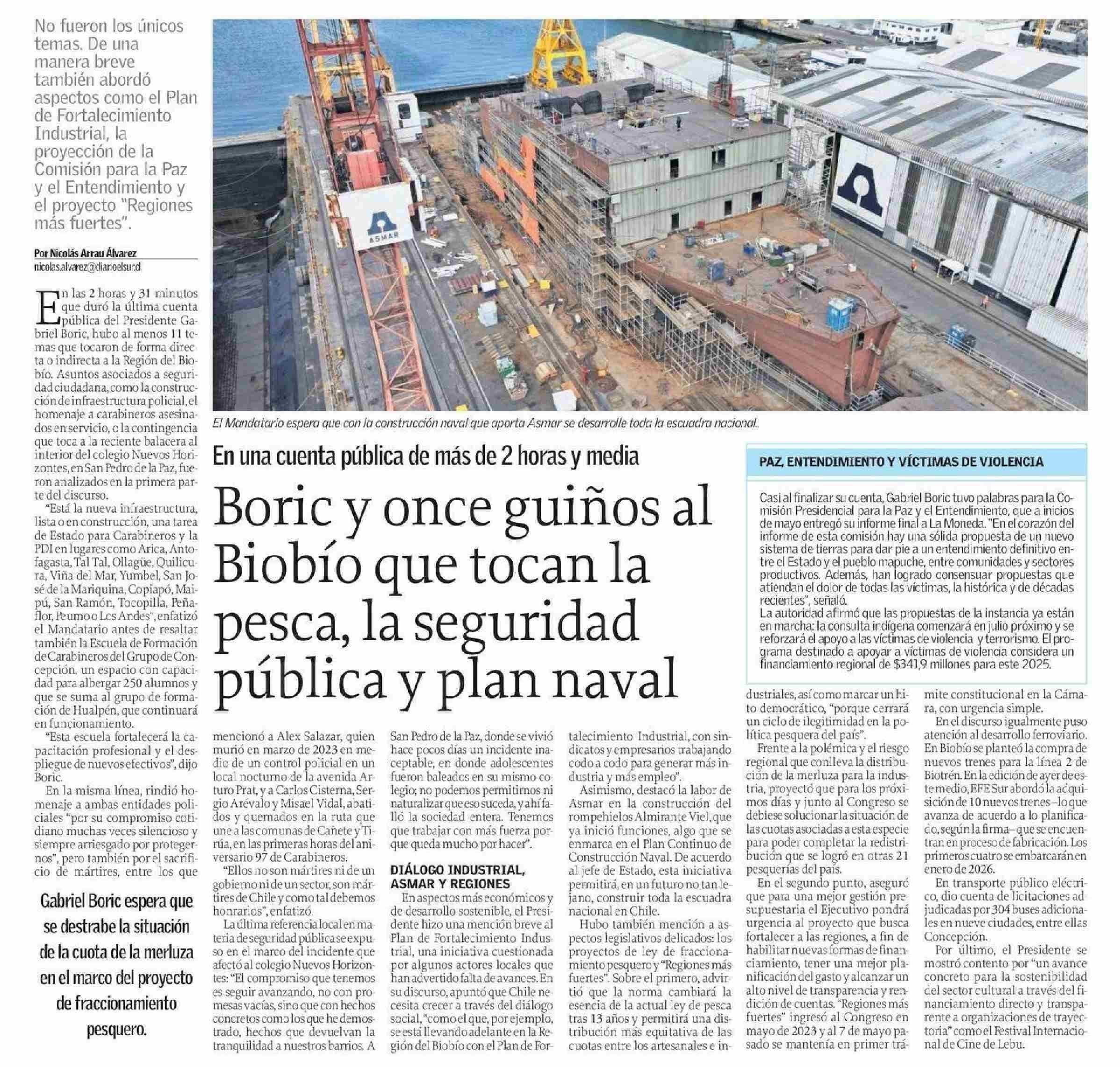 Boric y once guiños al Biobío que tocan la pesca, la seguridad pública y plan naval