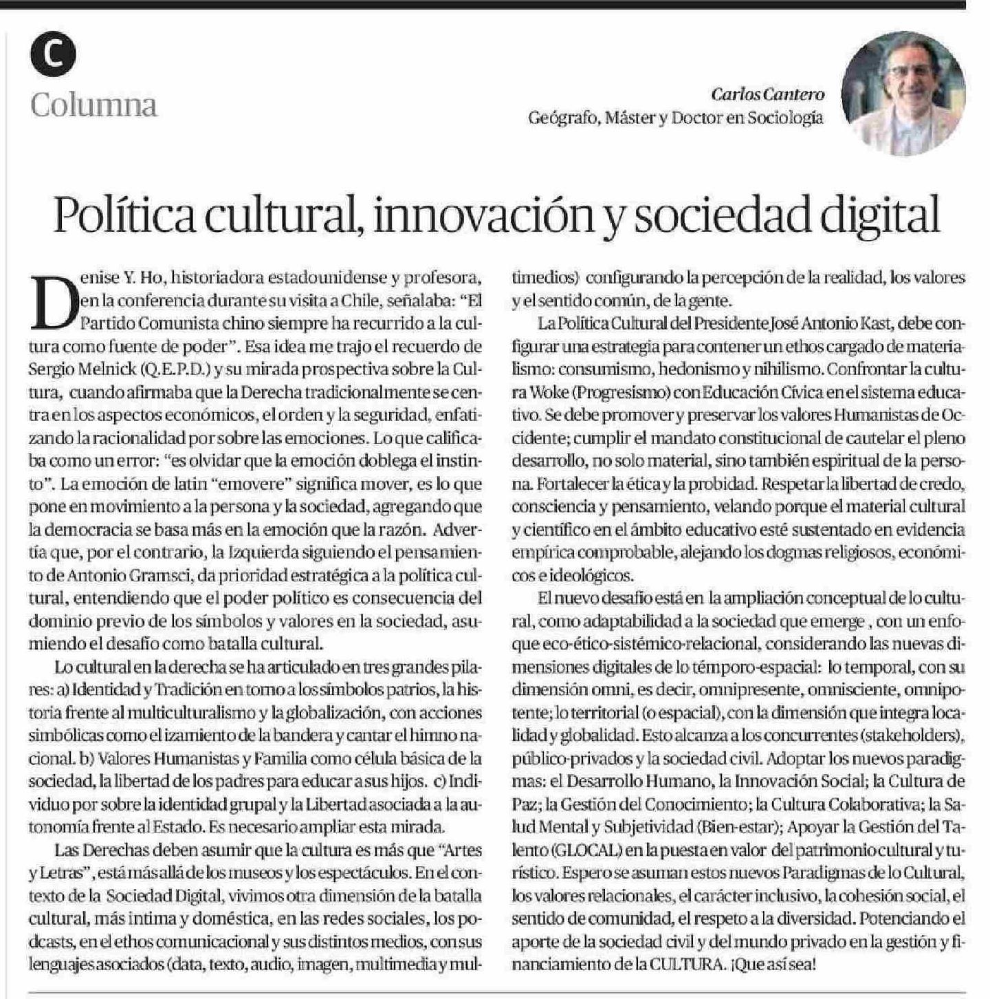 Título: Columnas de Opinión: Política cultural, innovación y sociedad digital