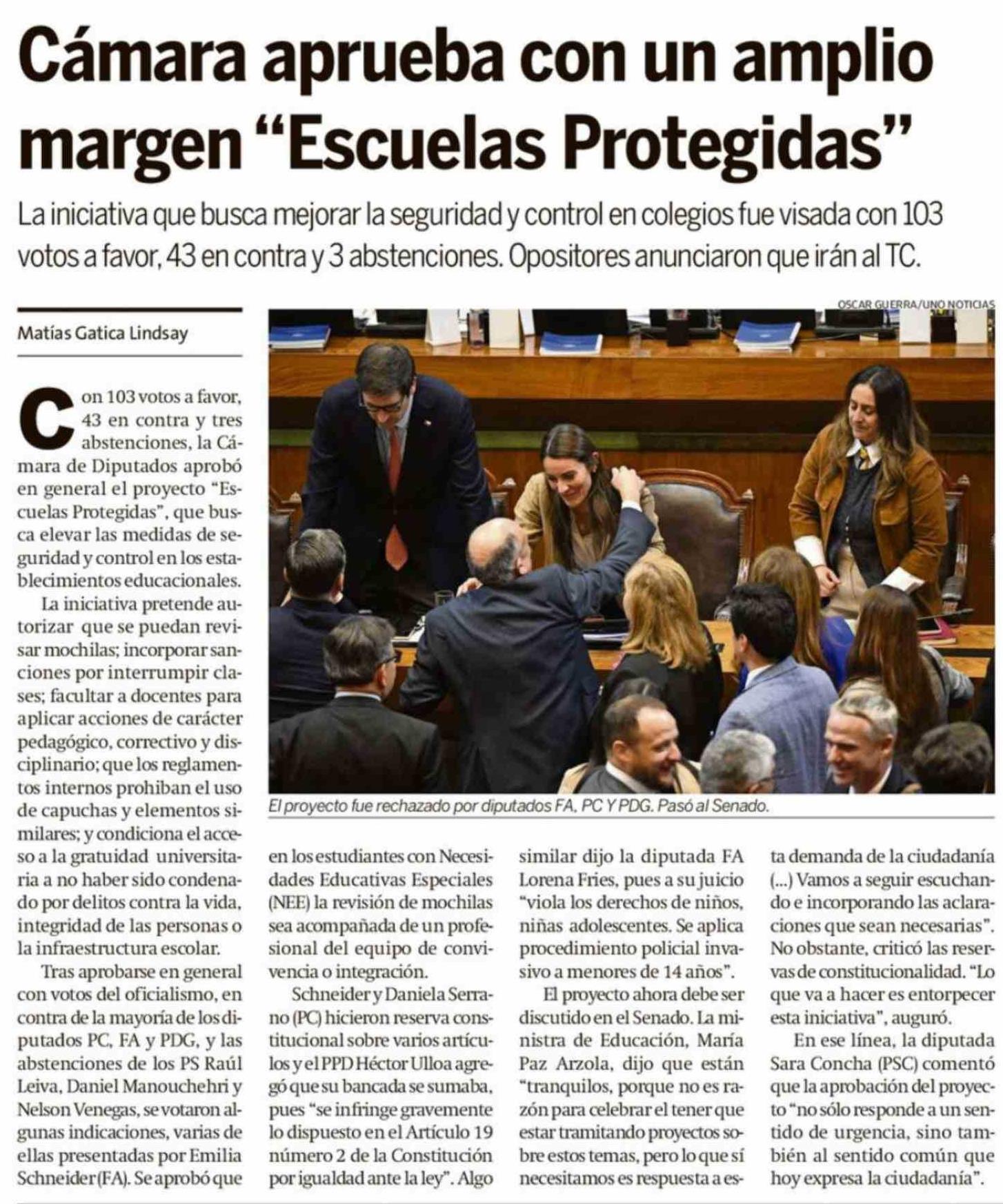 Cámara aprueba con un amplio margen “Escuelas Protegidas”