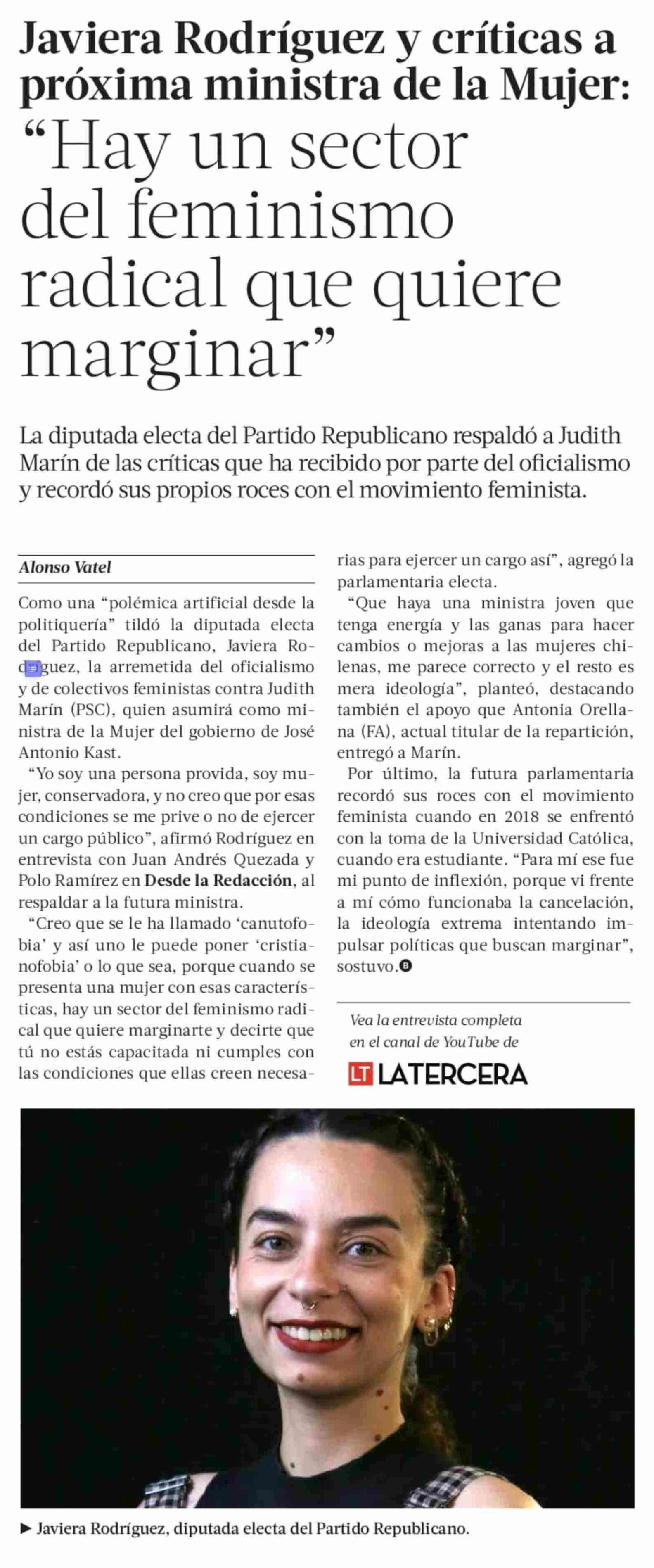 Javiera Rodríguez y críticas a próxima ministra de la Mujer: "Hay un sector del feminismo radical que quiere marginar"