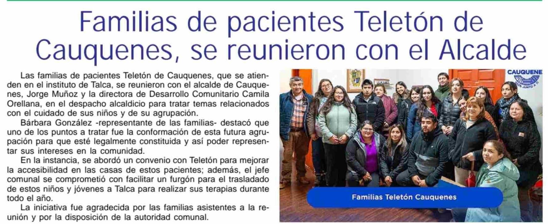Familias de pacientes Teletón de Cauquenes, se reunieron con el Alcalde