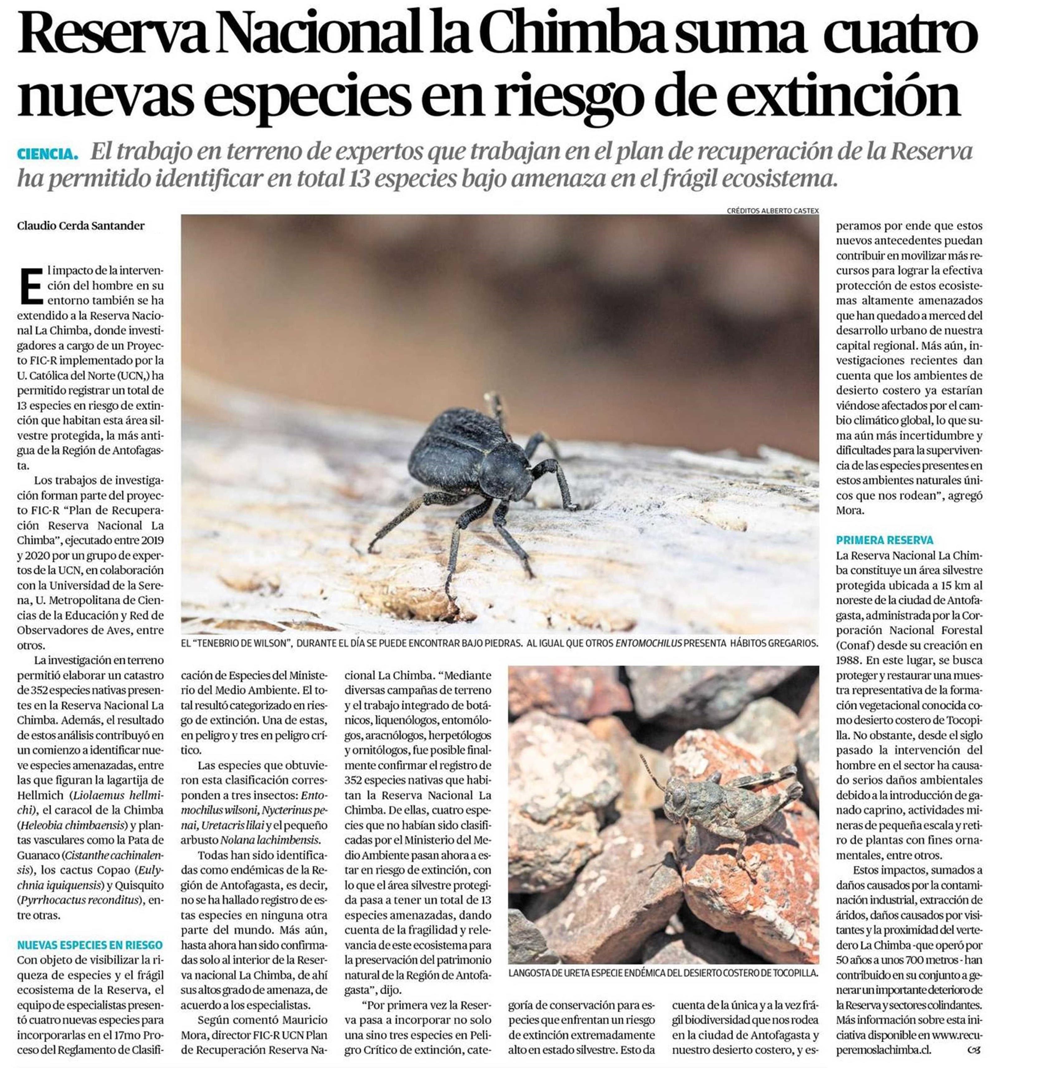 Reserva Nacional la Chimba suma cuatro nuevas especies en riesgo de extinción