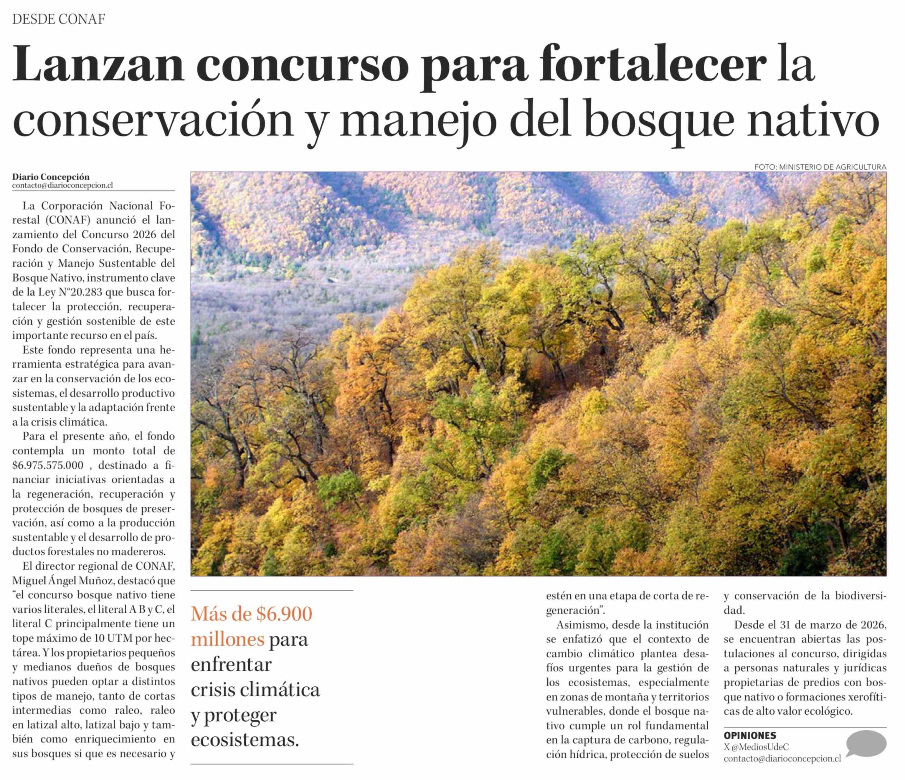 Lanzan concurso para fortalecer la conservación y manejo del bosque nativo