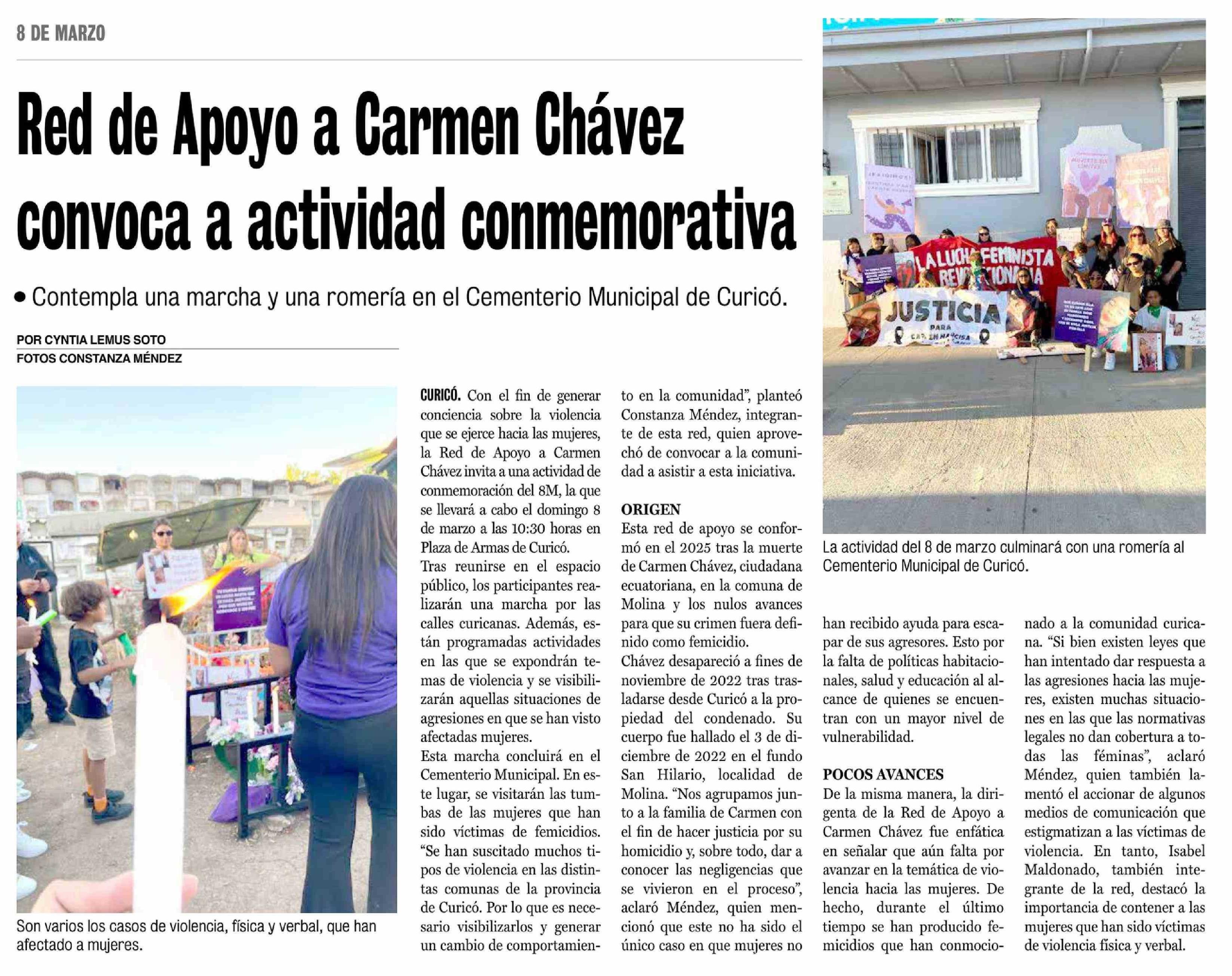Red de Apoyo a Carmen Chávez convoca a actividad conmemorativa