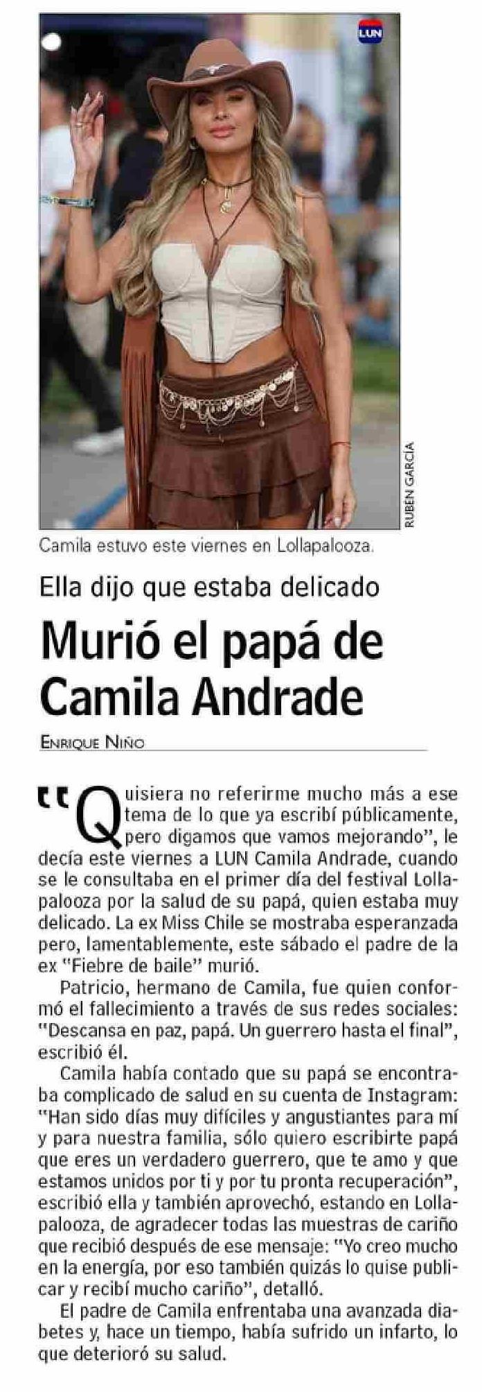 Murió el papá de Camila Andrade