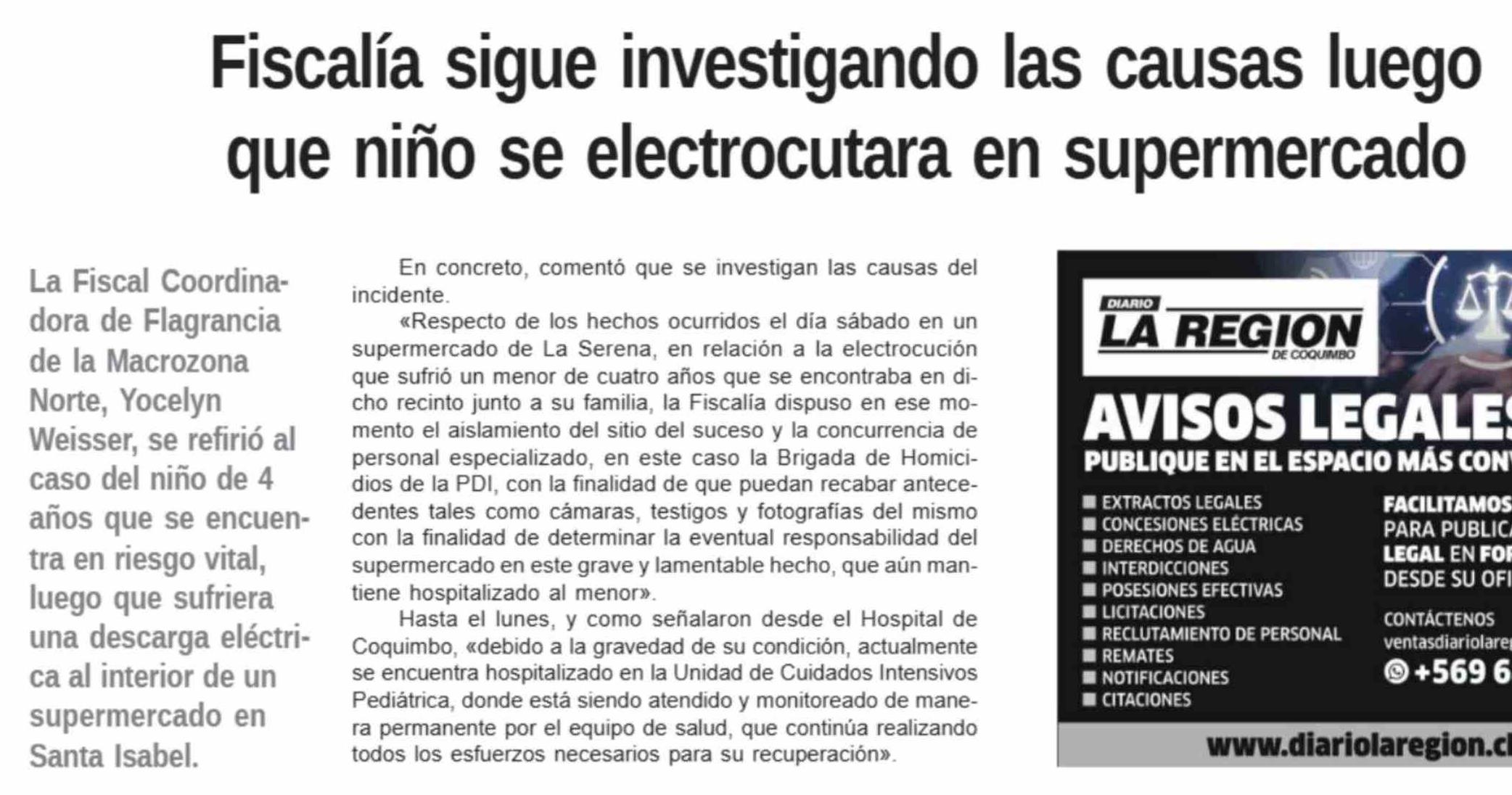 Título: Fiscalía sigue investigando las causas luego que niño se electrocutara en supermercado