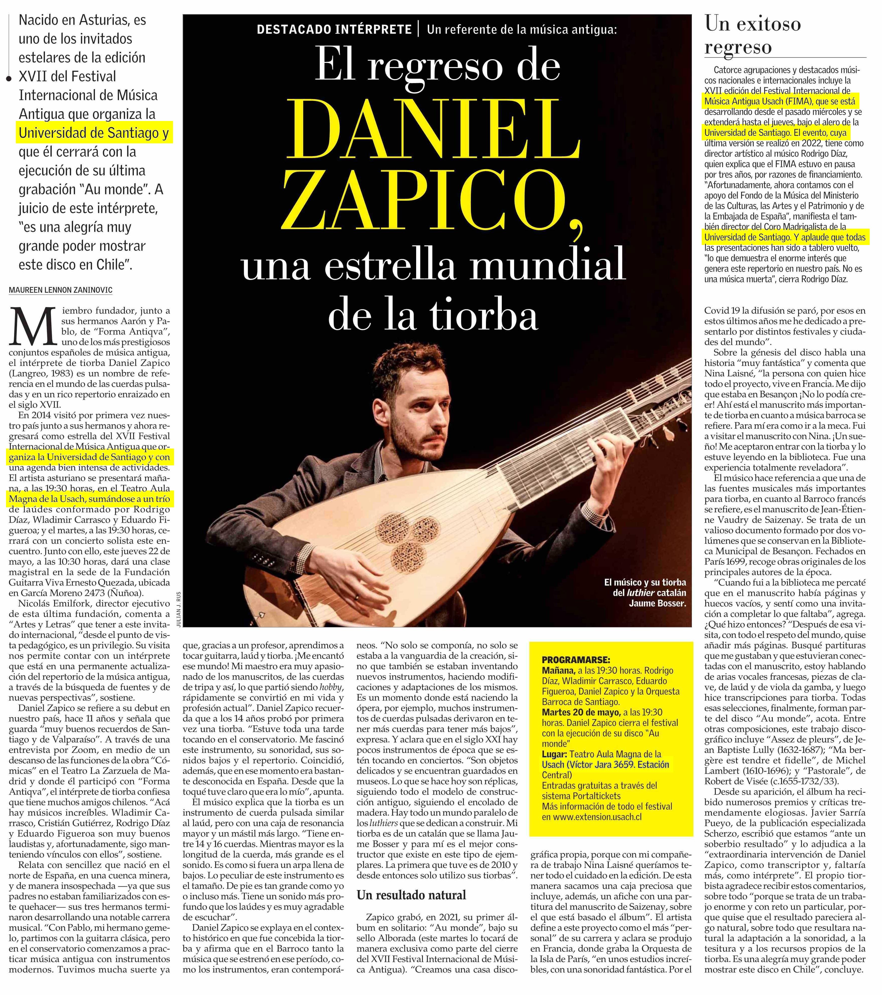 El regreso de DANIEL ZAPICO, de la tiorba una estrella mundial