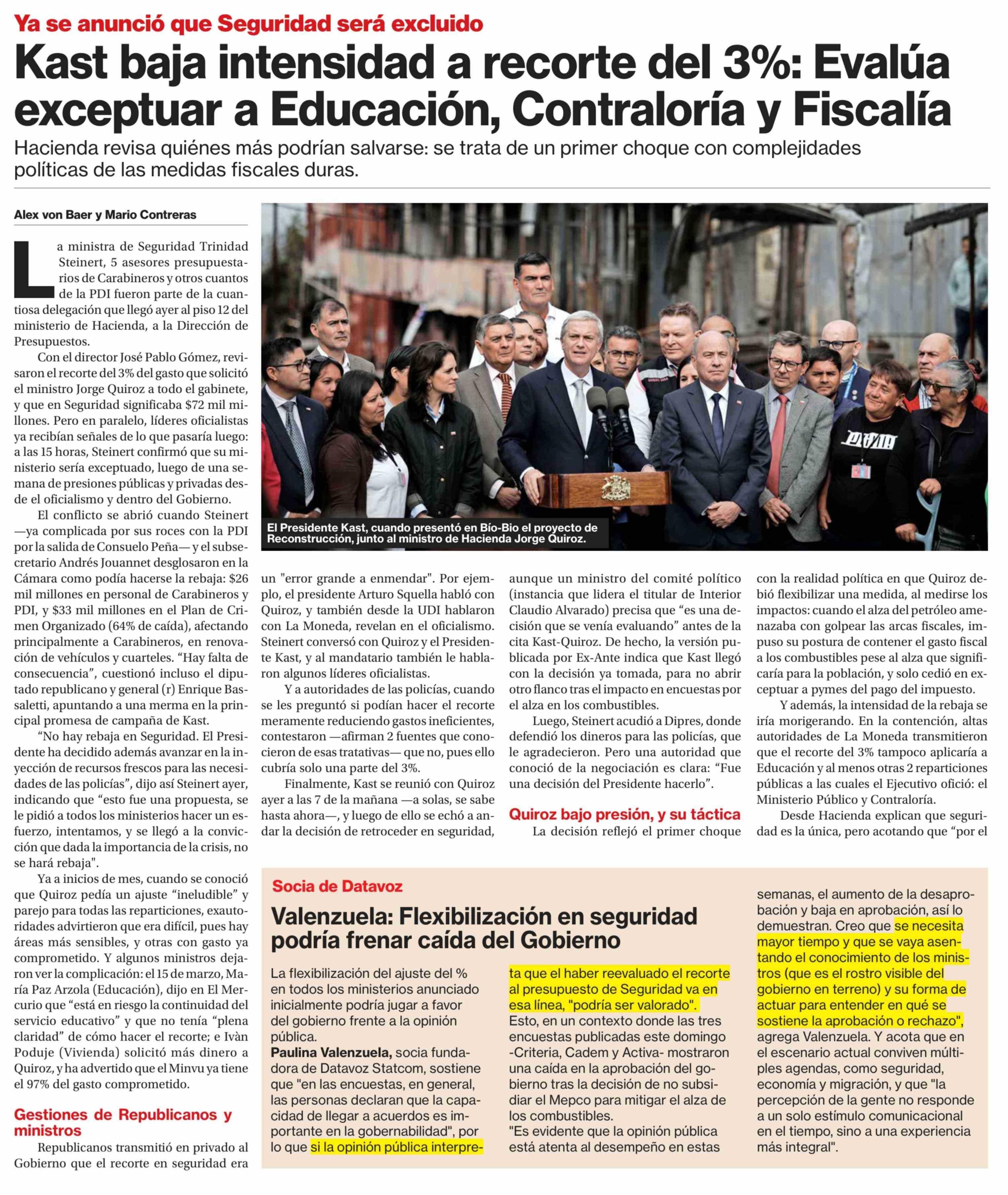 Kast baja intensidad a recorte del 3%: Evalúa exceptuar a Educación, Contraloría y Fiscalía