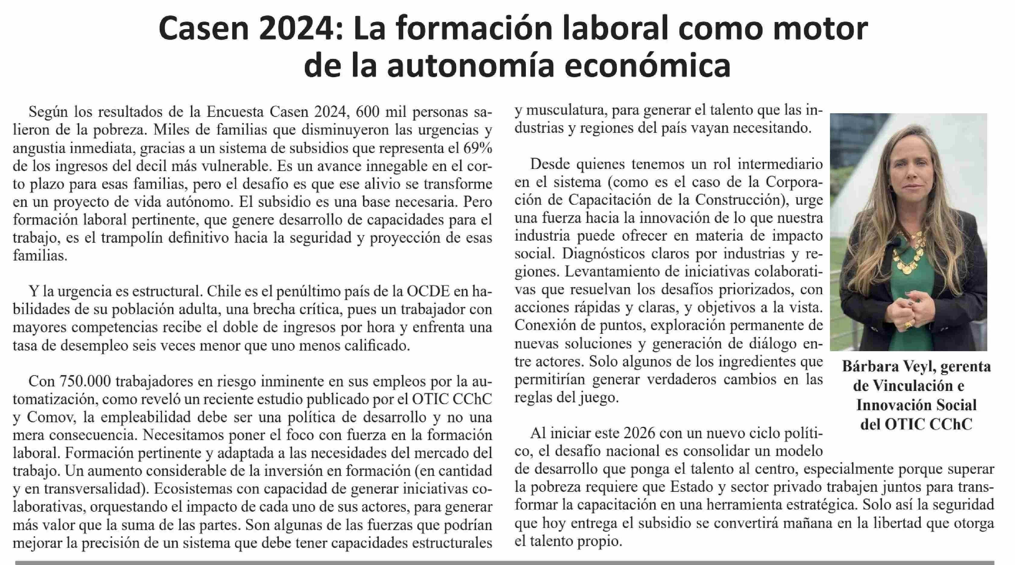 Columnas de Opinión: Casen 2024: La formación laboral como motor de la autonomía económica