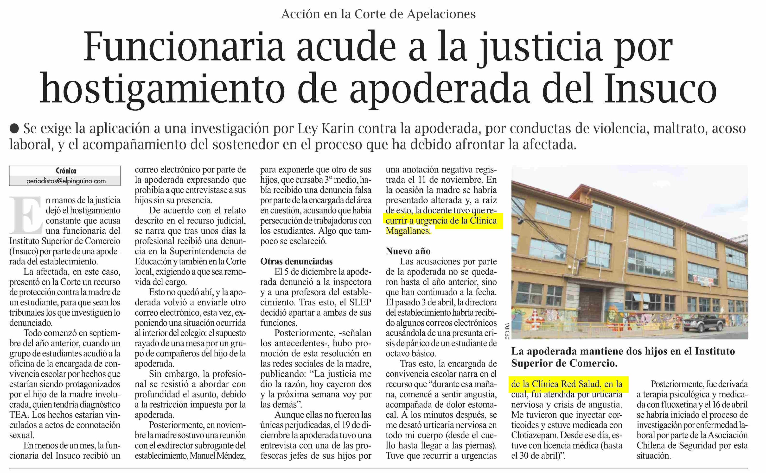 Funcionaria acude a la justicia por hostigamiento de apoderada del Insuco