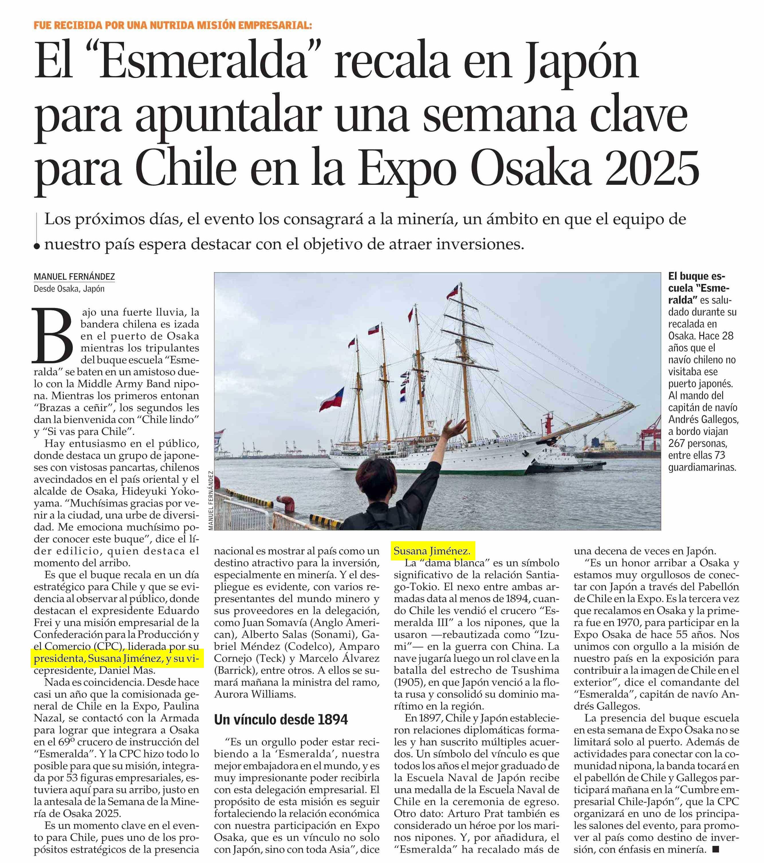 El "Esmeralda" recala en Japón para apuntalar una semana clave para Chile en la Expo Osaka 2025