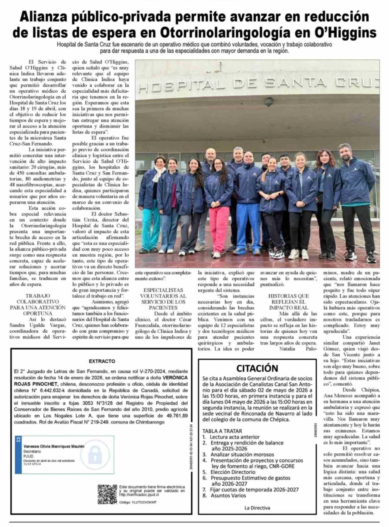 Fecha: 22-04-2026 Sector: Noticia general Región: Región del Libertador General Bernardo O'Higgins