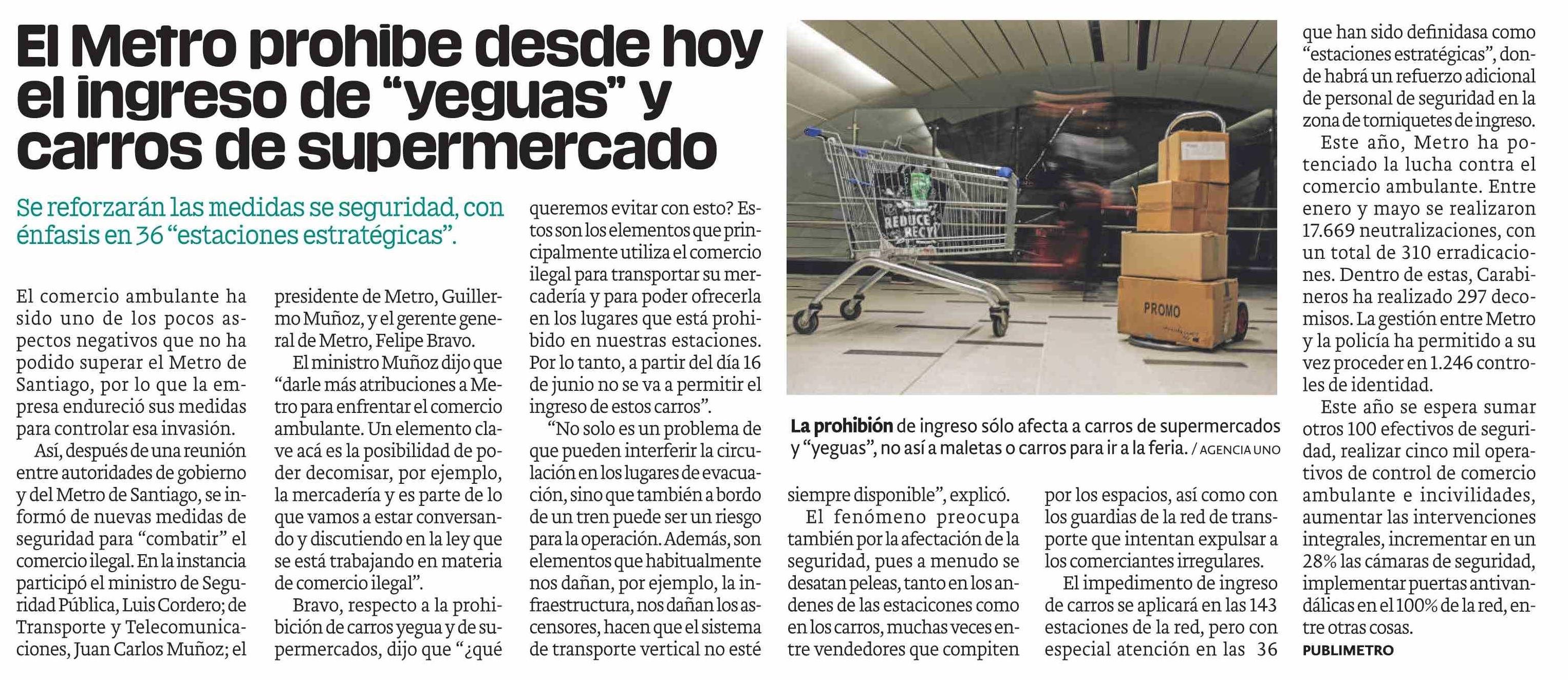 El Metro prohíbe desde hoy el ingreso de “yeguas” y carros de supermercado
