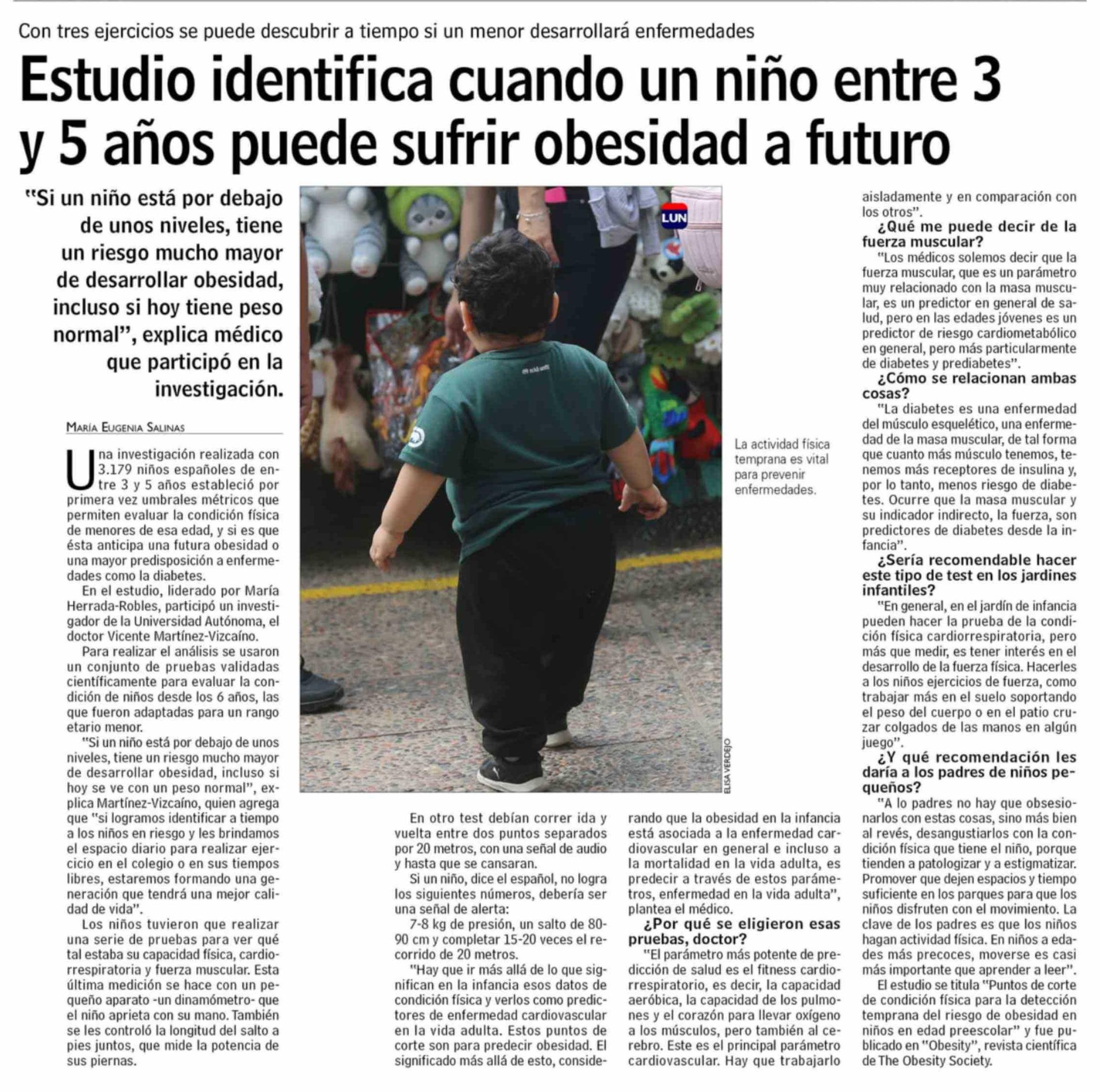 Título: Estudio identifica cuando un niño entre 3 y 5 años puede sufrir obesidad a futuro
