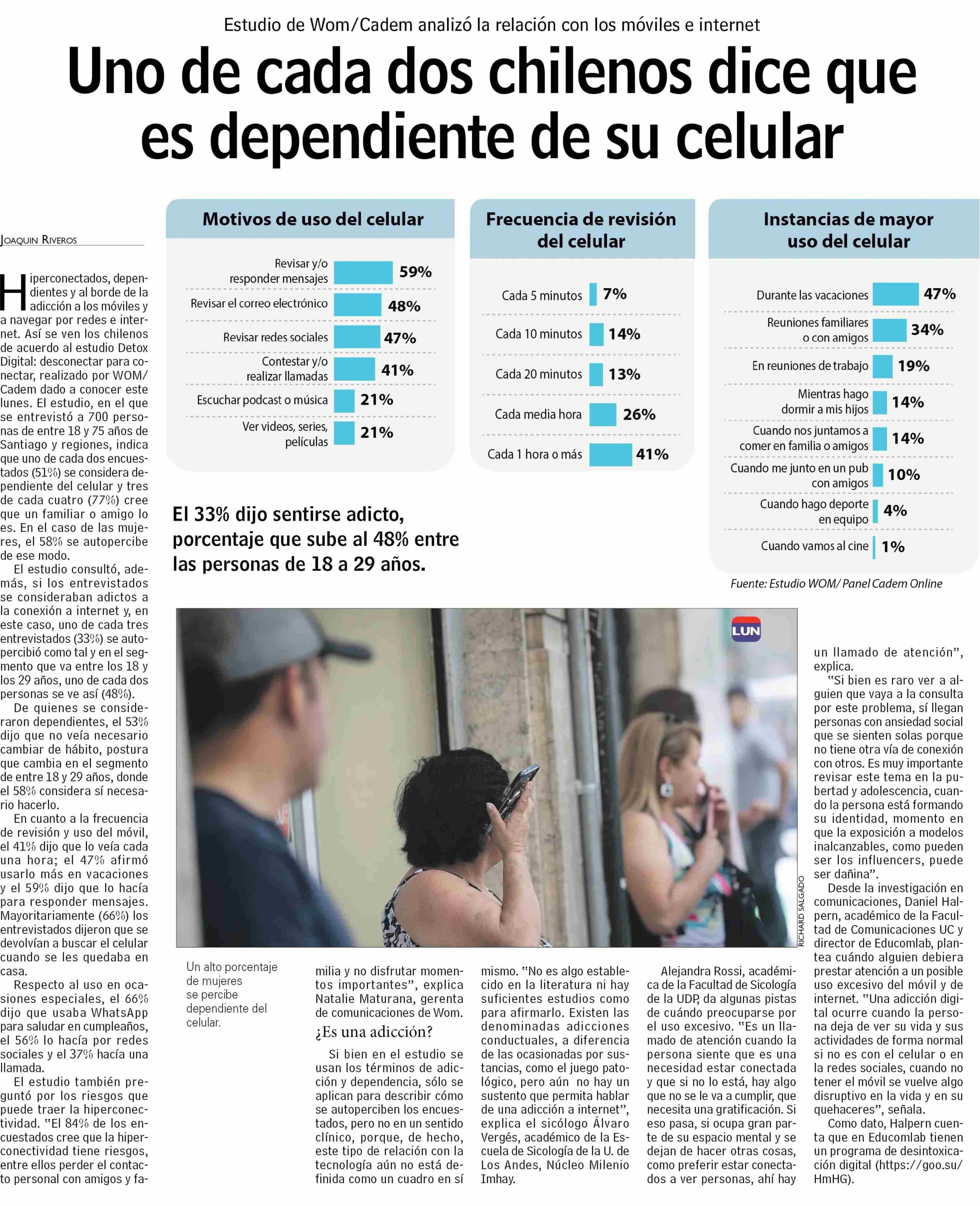 Uno de cada dos chilenos dice que es dependiente de su celular
