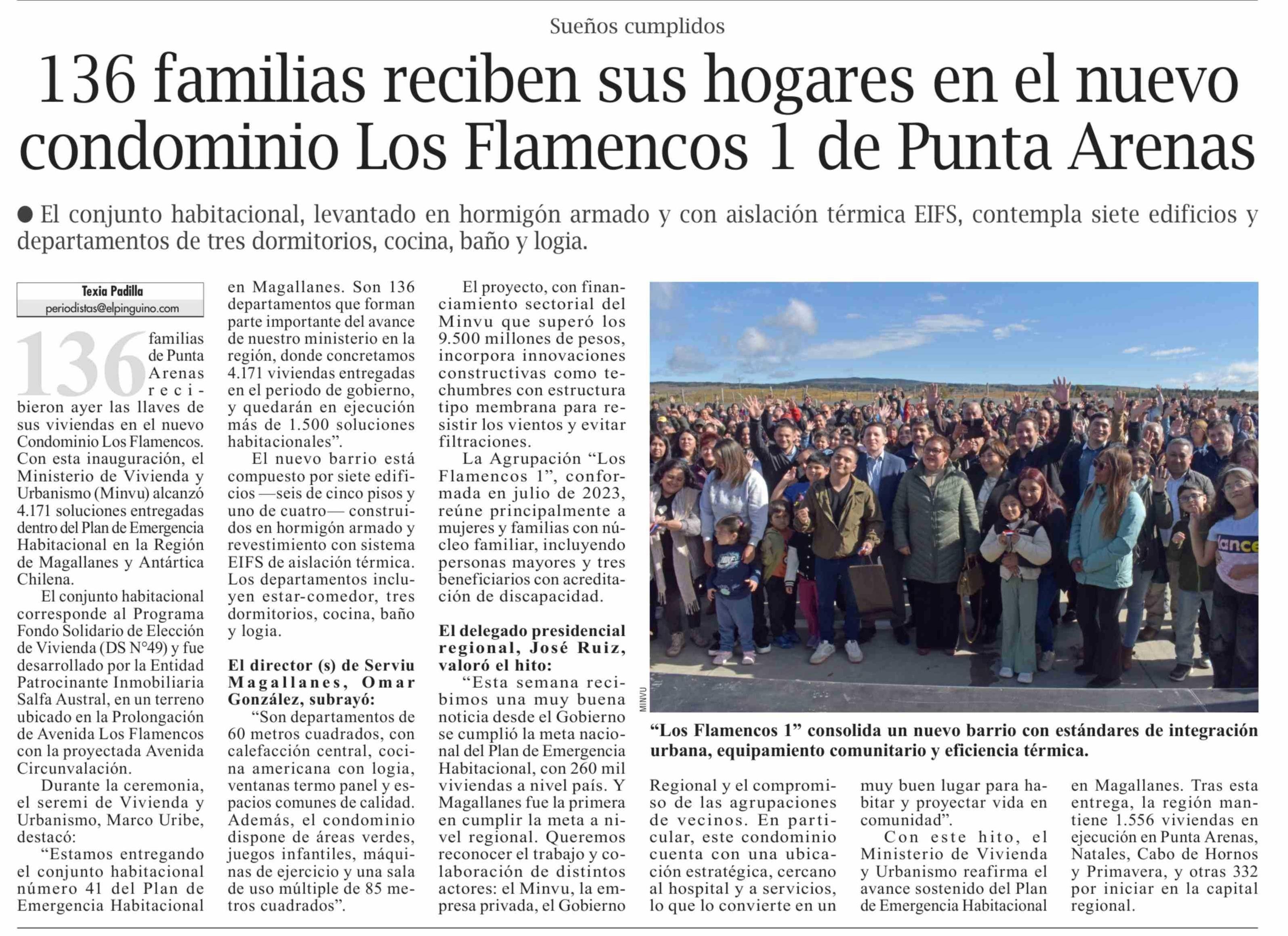136 Familias reciben sus hogares en el nuevo condominio Los Flamencos 1 de Punta Arenas