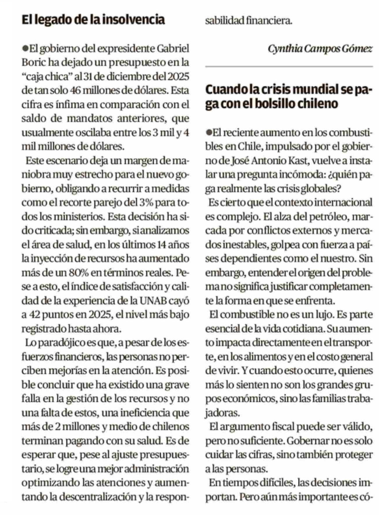 CARTAS: El legado de la insolvencia