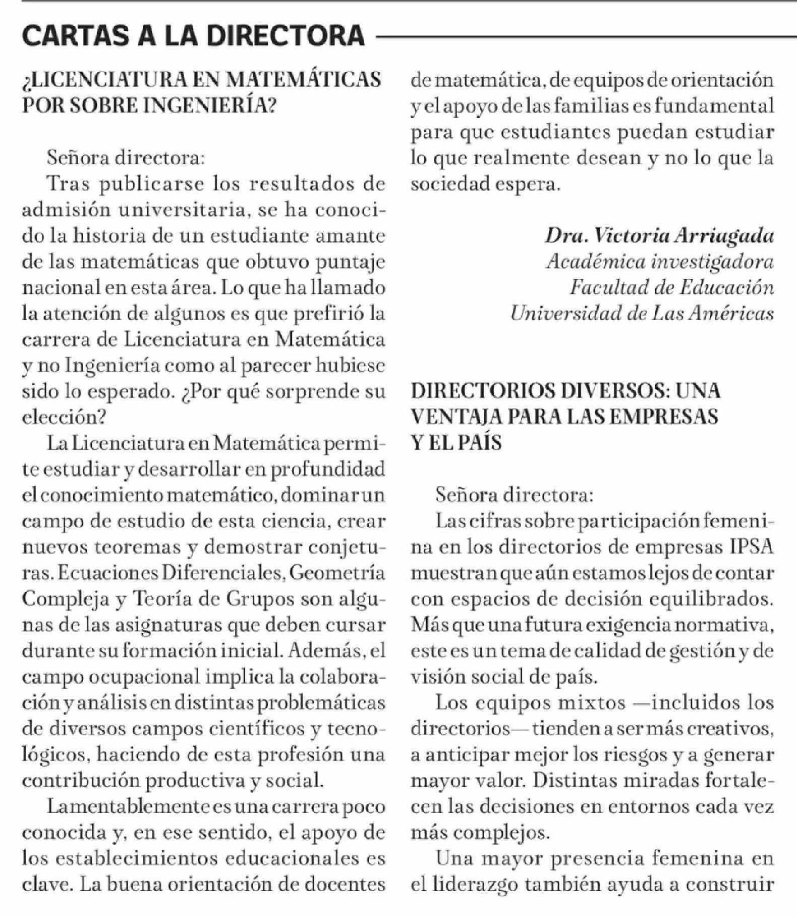 Título: Cartas: ¿LICENCIATURA EN MATEMÁTICAS POR SOBRE INGENIERÍA?